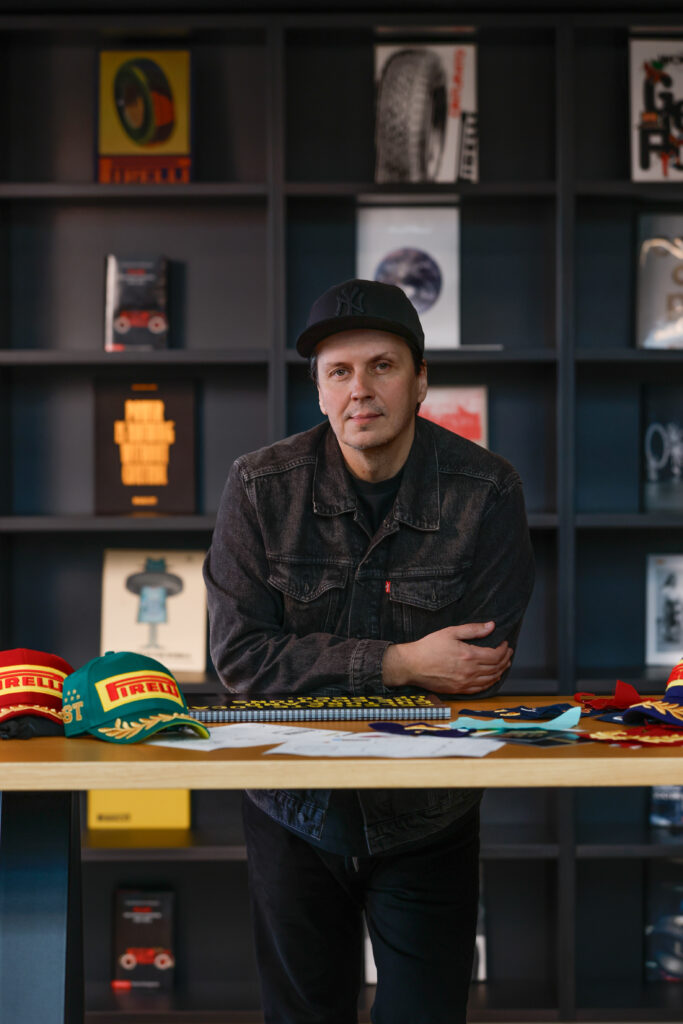 Avec Pirelli Design, il façonne bien plus qu’une ligne d’accessoires ou de vêtements : il crée un langage visuel et sensoriel, une esthétique qui capte l’énergie brute des circuits et l’élève au rang d’art de vivre.