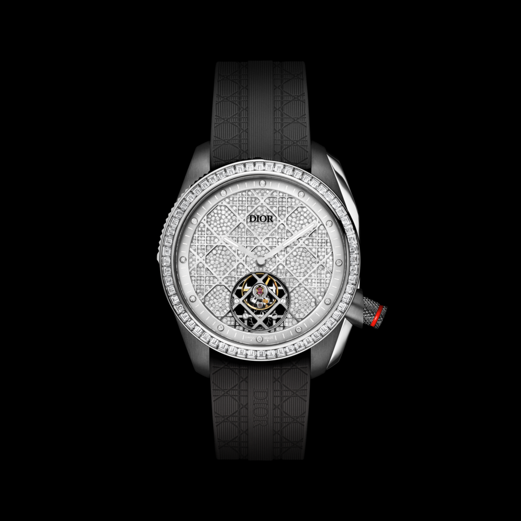 Dior pousse la haute horlogerie encore plus loin avec deux modèles exclusifs intégrant un tourbillon volant, rehaussé par un motif cannage en mouvement toutes les 15 secondes.