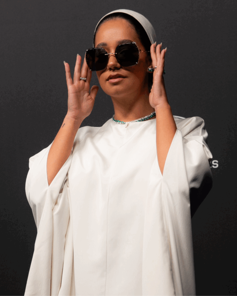 Le 19 mai 2025, sous les ors feutrés du Chopard Universe Gala Evening organisé en marge du 78e Festival de Cannes, Lena Mahfouf a choisi de parachever son look avec une pièce d’exception : une paire de lunettes de soleil Red Carpet en édition limitée, imaginée par De Rigo pour la Maison Chopard.