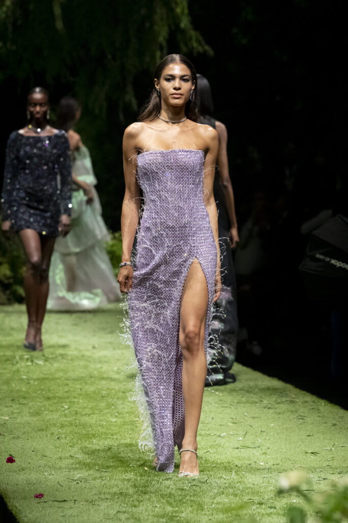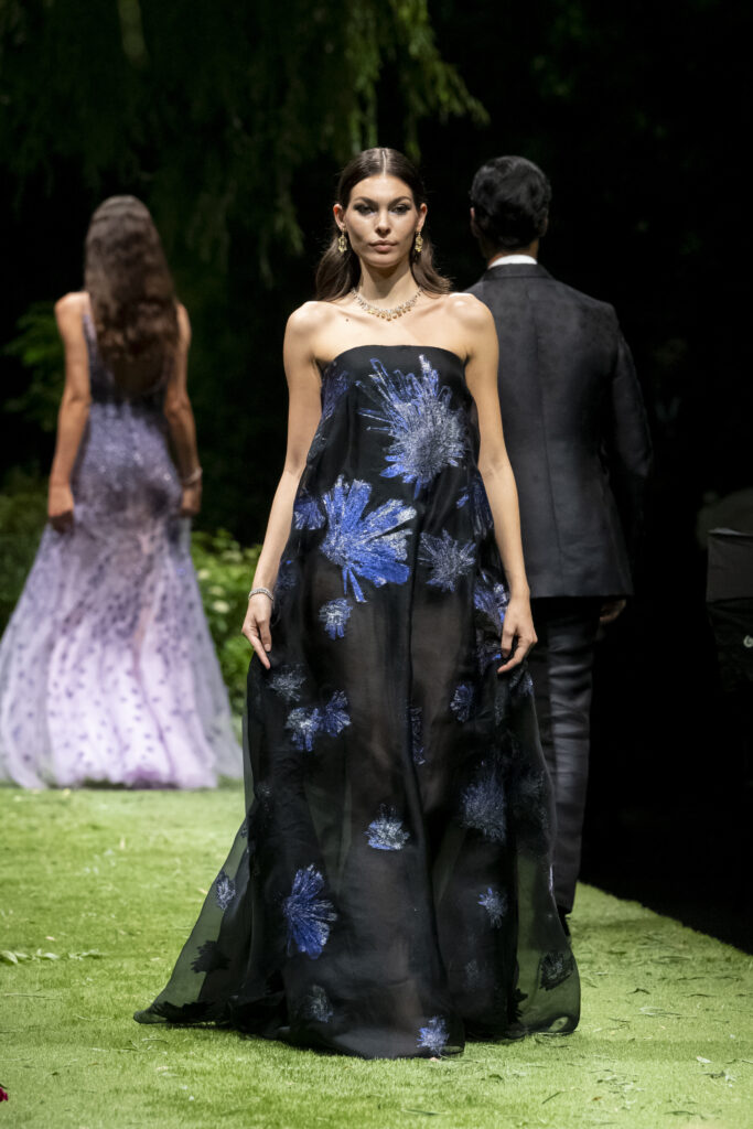Cette nouvelle collection, imaginée comme un voyage interstellaire, mêle avec justesse la rigueur de la Haute Couture aux éclats célestes de la Haute Joaillerie. Inspirée par l’univers cosmique – lunes, cristaux stellaires, nébuleuses et constellations – chaque création est pensée comme une ode au ciel, une vision poétique ancrée dans le raffinement absolu.