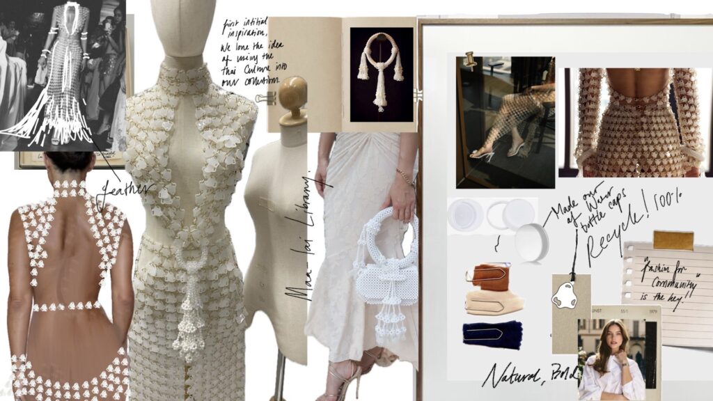 D’une valeur de 13 000 dollars, la pièce unique appartient à la ligne Infinitude, manifeste stylistique du label thaïlandais fondé par les sœurs Pipatchara et Jittrinee Kaeojinda. Depuis 2018, leur maison trace une voie nouvelle : celle d’une haute couture écologique, enracinée dans les savoir-faire traditionnels du macramé et la revalorisation de déchets ménagers.