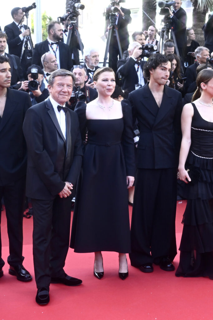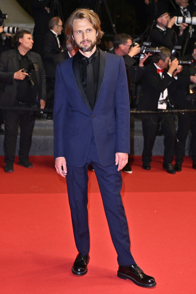 En écho à cette intensité féminine, le registre masculin se réinvente. Sur le tapis de Sentimental Value, Anders Danielsen Lie revendique un formalisme nuancé : veste en laine marine col châle, chemise noire ton sur ton, cravate de soie et derbies vernis. Une interprétation minimaliste mais audacieuse du tailoring Dior Men by Kim Jones.