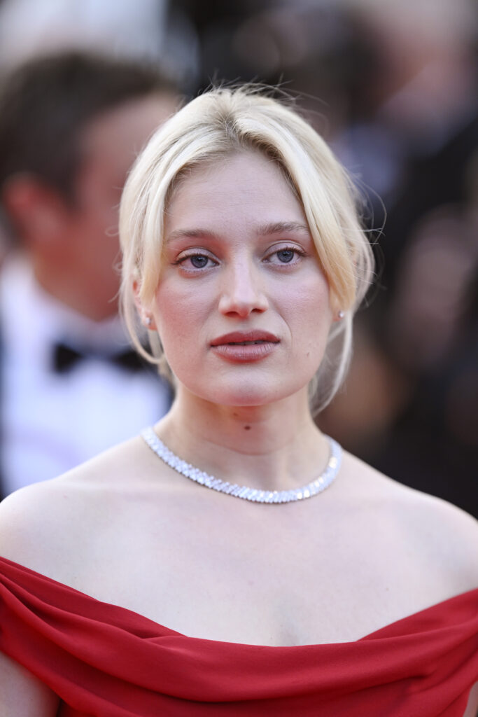 Ce matin suspendu prépare le terrain pour une flambée nocturne. Lors de l’avant-première de The History of Sound, la maison se déploie en silhouette rouge : Nadia Tereszkiewicz, icône Dior, incarne le cœur battant de la couture dans une robe drapée dramatique, contrepoint parfait à la mousseline brodée années 50 de Jenny Slate. Le maquillage Nude Look 0N, appliqué comme une seconde peau, devient signature visuelle d’un visage Dior 2025.