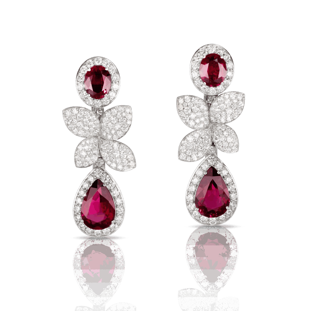 Joan Smalls arborait également une bague Heart to Earth en or blanc, ornée d’un rubis ovale 6×8 mm et de diamants, ainsi que des boucles d’oreilles assorties, en or blanc 18 carats, parées de 7,36 carats de diamants blancs et de quatre rubellites éclatantes.