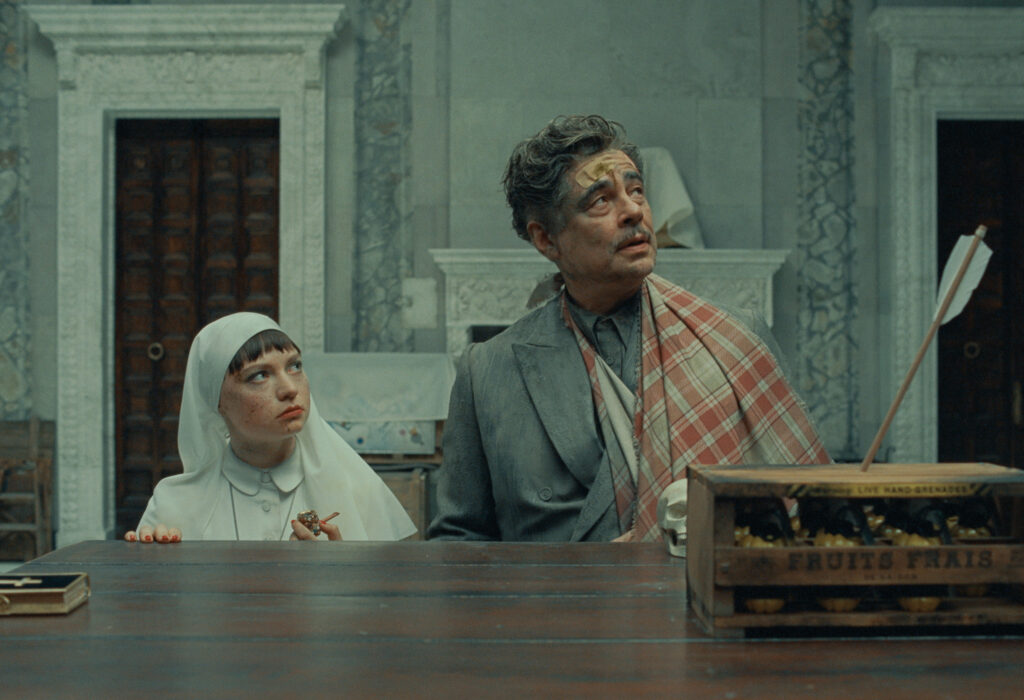 (L to R) Mia Threapleton as Liesl and Benicio Del Toro as Zsa-Zsa Korda in director Wes Anderson’s THE PHOENICIAN SCHEME, a Focus Features release. Credit: Courtesy of TPS Productions/Focus Features © 2025 All Rights Reserved.