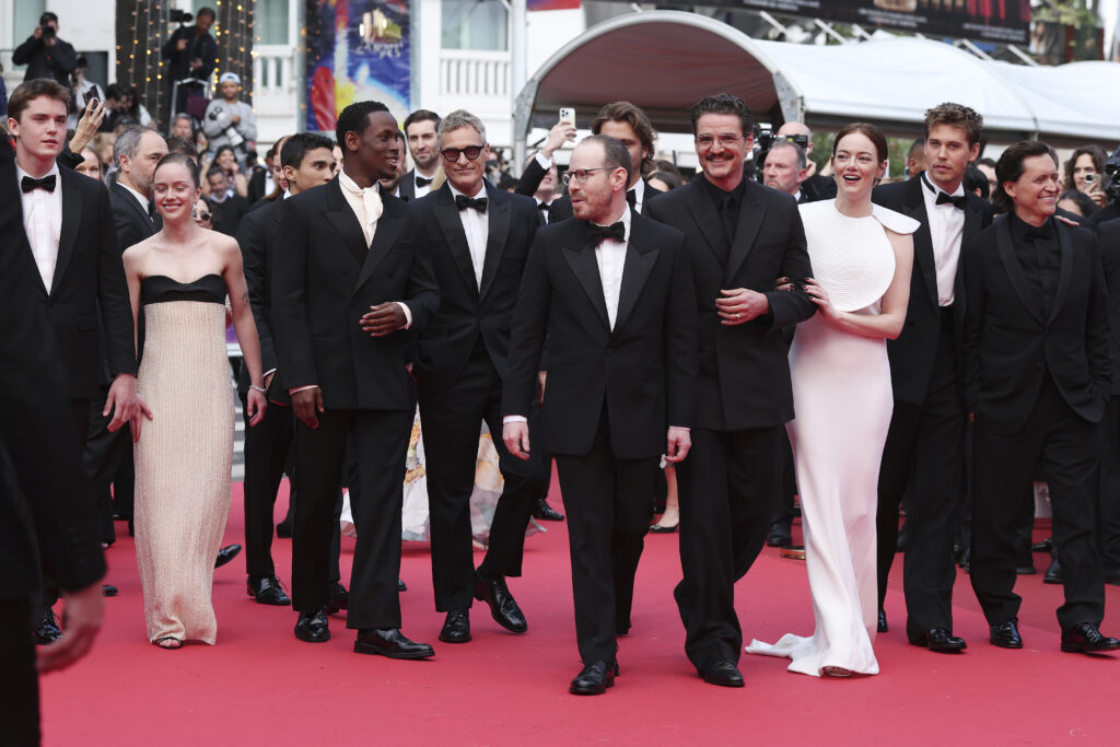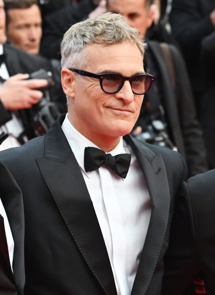 Le 16 mai, Joaquin Phoenix fait une entrée remarquée dans un smoking en sergé noir signé Sarah Burton, à la sobriété sculpturale : veste à revers en satin, chemise en popeline blanche et souliers en cuir végan. Une vision du red carpet moderne, sobre et impeccable.