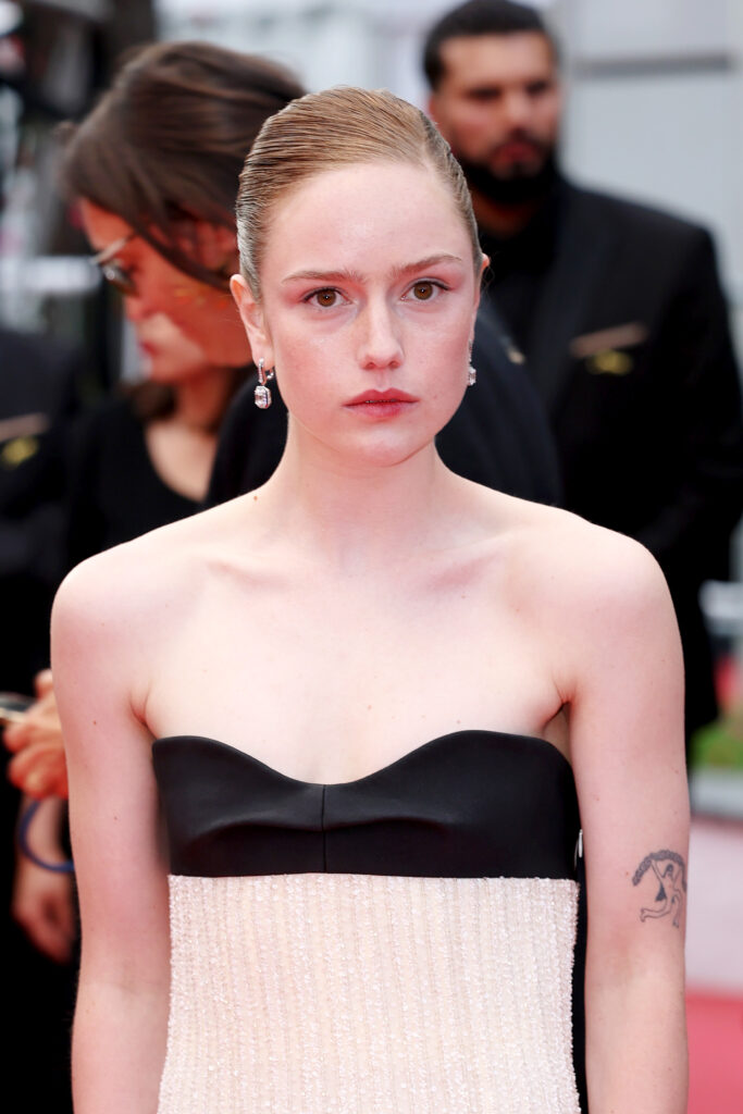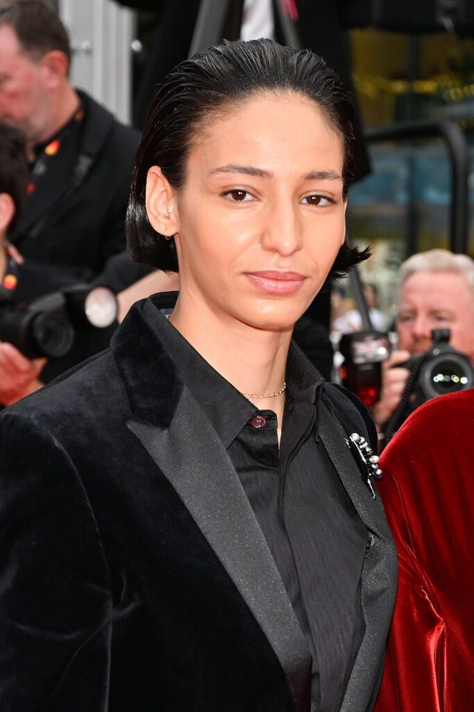 La montée des marches de La Petite Dernière, réalisée par Hafsia Herzi, a également célébré Dior. La réalisatrice-actrice portait une robe en velours rouge tandis que Mouna Soualem brillait en velours noir Dior. Elles aussi étaient maquillées par Dior, dans des nuances chaudes et lumineuses, entre Coral Riviera sur les paupières et Rose Celestial sur les lèvres pour Hafsia.