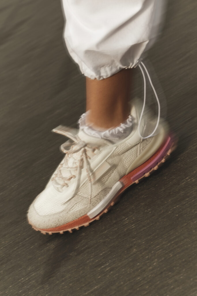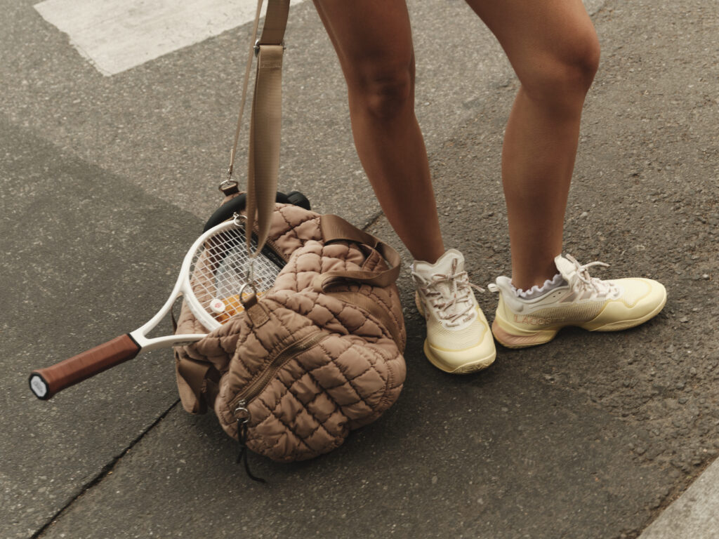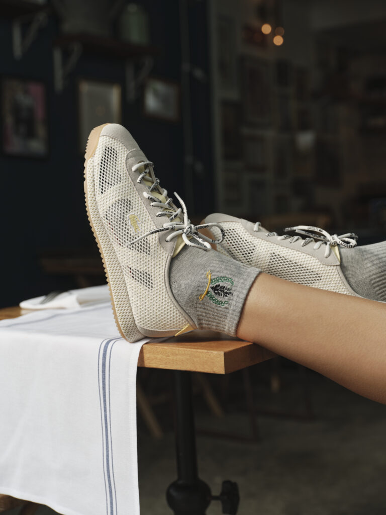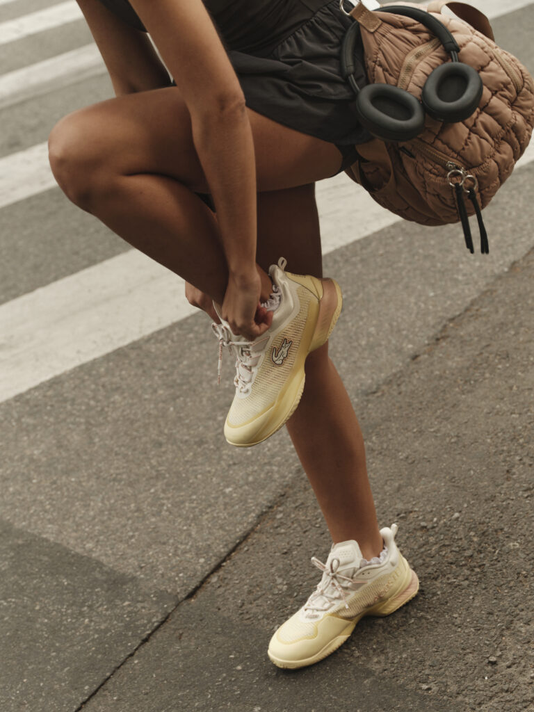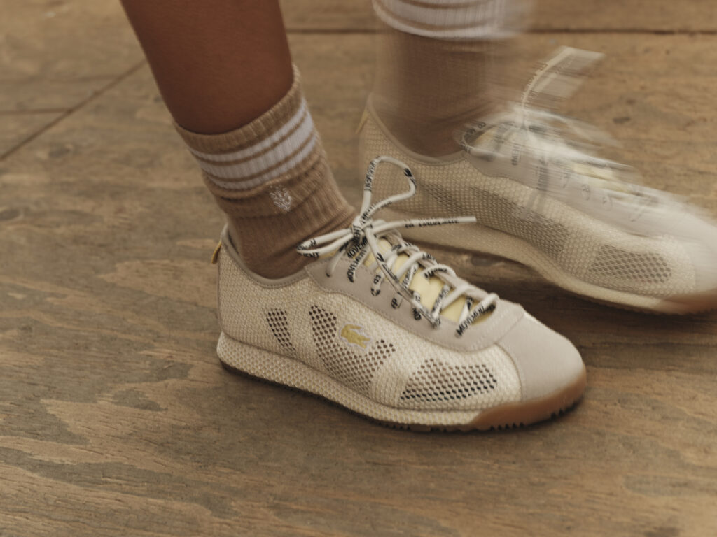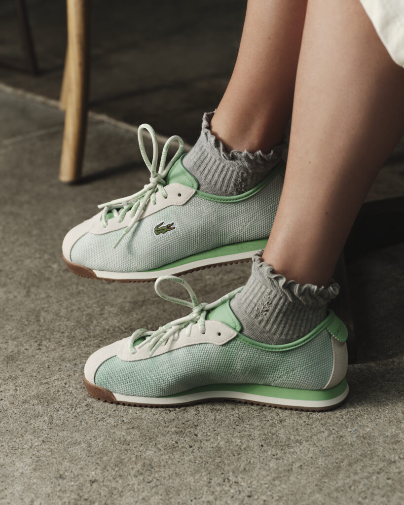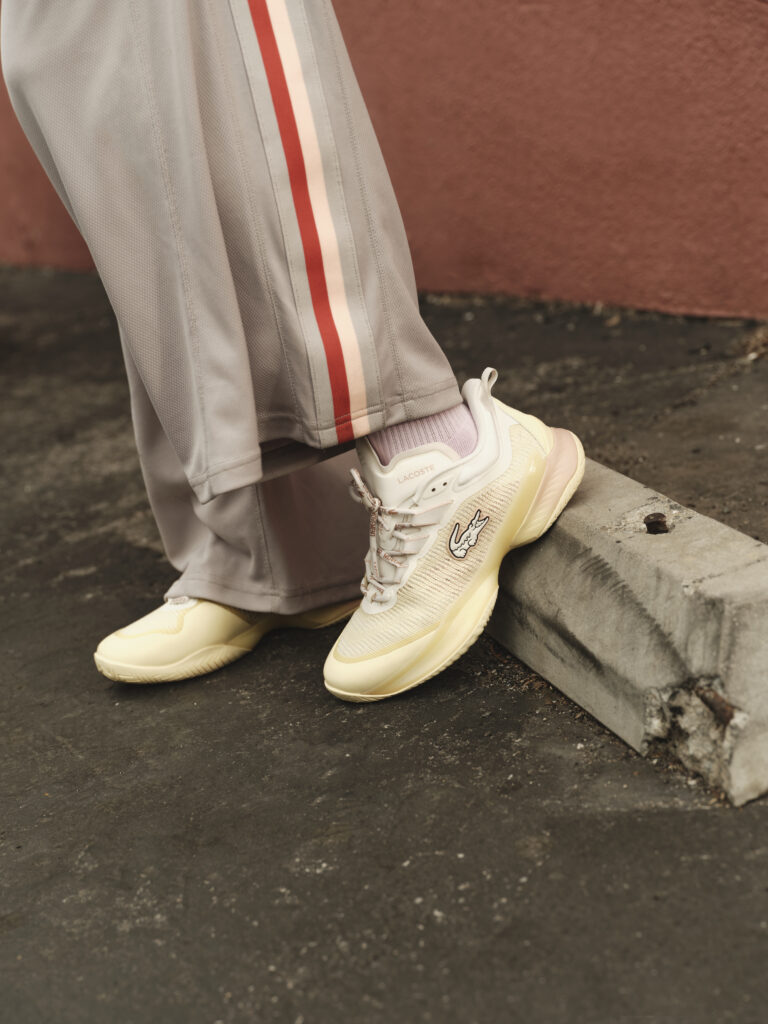 Les sneakers réinterprètent les codes vintage du sport de raquette, avec une lecture contemporaine des archives Lacoste. Le design emprunte à l’élégance désinvolte des années 80, avec des teintes douces et fraîches comme le sweet mint ou le butter yellow. Deux modèles s’ancrent dans un registre urbain et casual, tandis qu’un troisième revendique sa technicité, destiné à accompagner les joueuses sur le court.