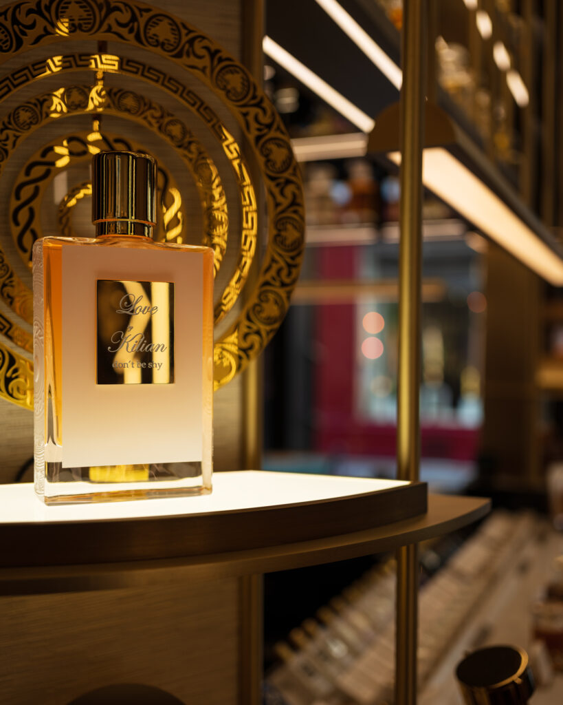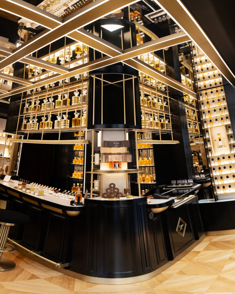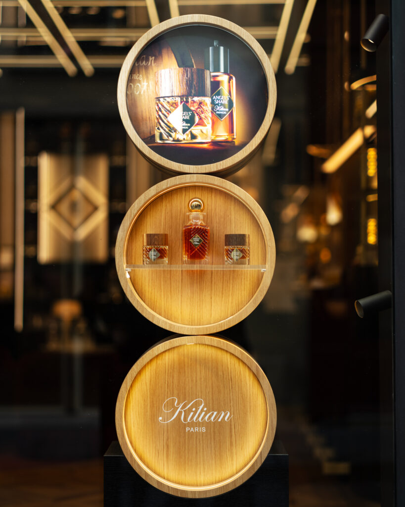 Le Bar olfactif permet de découvrir les créations Kilian Paris répertoriées en cinq familles olfactives : Les Agrumes Frais, Les Fleurs Narcotiques, Les Bois de Caves, Les Volutés de Fumées, et celle des Liqueurs. Les carafes iconiques Kilian Paris viennent compléter et souligner l’univers de la marque, qui porte l’empreinte de son fondateur et signe l’identité parisienne de la boutique.