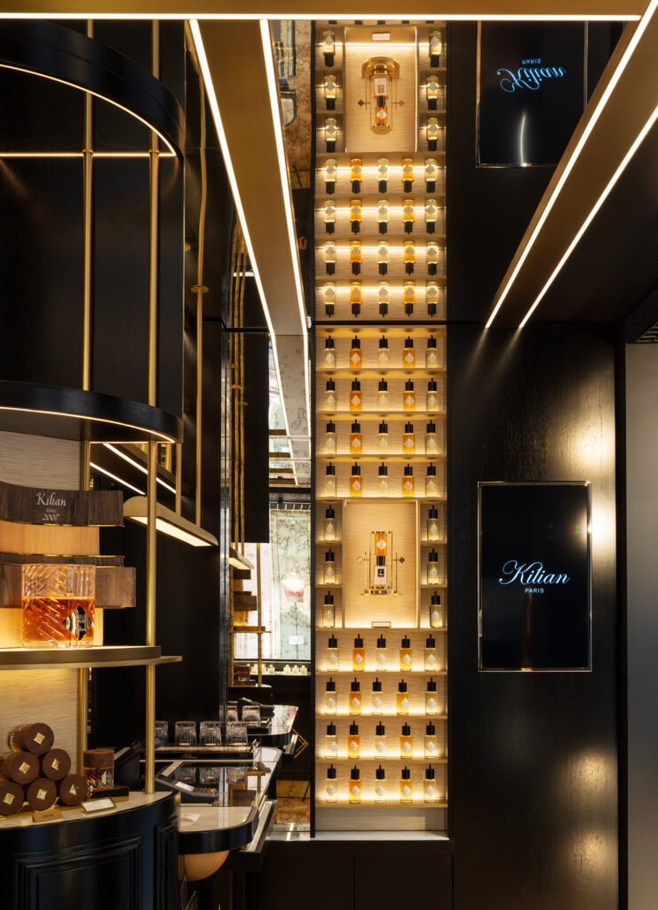 Dans un immeuble haussmannien, Kilian Paris offre un véritable écrin olfactif. Cette boutique fusionne élégance, ambiance feutrée et sophistication. Inspiré des bars parisiens, chaque détail architectural met en valeur des matériaux nobles, sublimés par une lumière tamisée qui plonge les visiteurs dans une expérience olfactive multisensorielle, unique et personnalisée. Véritable hommage à l’art de vivre parisien, cette nouvelle boutique est un lieu privilégié pour les passionnés de parfums d’exception.