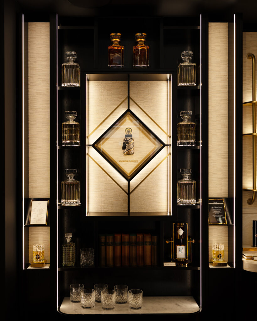 L’ADN de Kilian Paris est intrinsèquement lié à celui de son fondateur, Kilian Hennessy, descendant de l’une des plus illustres dynasties françaises de liqueurs fines. L’univers festif de Kilian Paris prend vie autour de sa pièce maîtresse : le Kilian Bar. Dans l’esthétique art déco, signature de la marque, le comptoir en marbre de Carrare et la structure en chêne noir avec des touches de bronze médaille brossé, reflètent l’ambiance des bars des plus grands palaces.