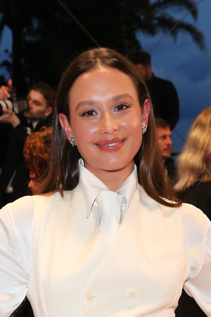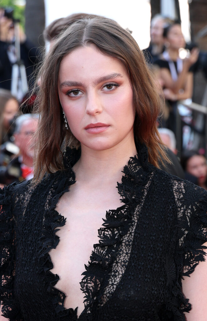 Angelina Woreth, magnétique dans une robe en dentelle noire signée Maria Grazia Chiuri, incarnait une élégance texturée et romantique, soulignée par un maquillage frais, ponctué du blush Rosy Glow et du rouge à lèvres Dior Charm. À ses côtés, Mathilde Roehrich a opté pour une robe fluide en crêpe de soie bordeaux, à la teinte intense et sophistiquée, qui dialoguait avec la lumière de la Croisette.