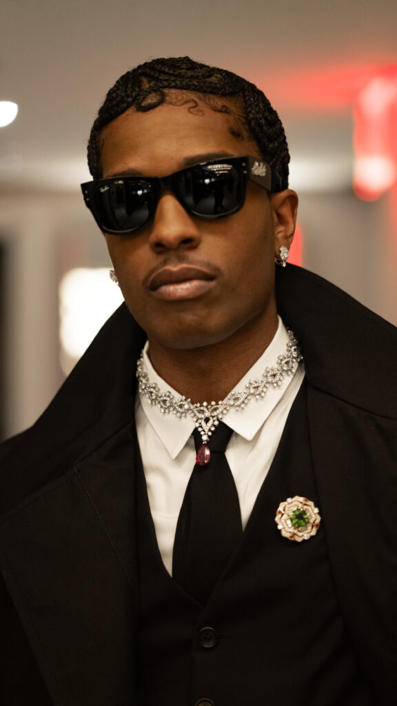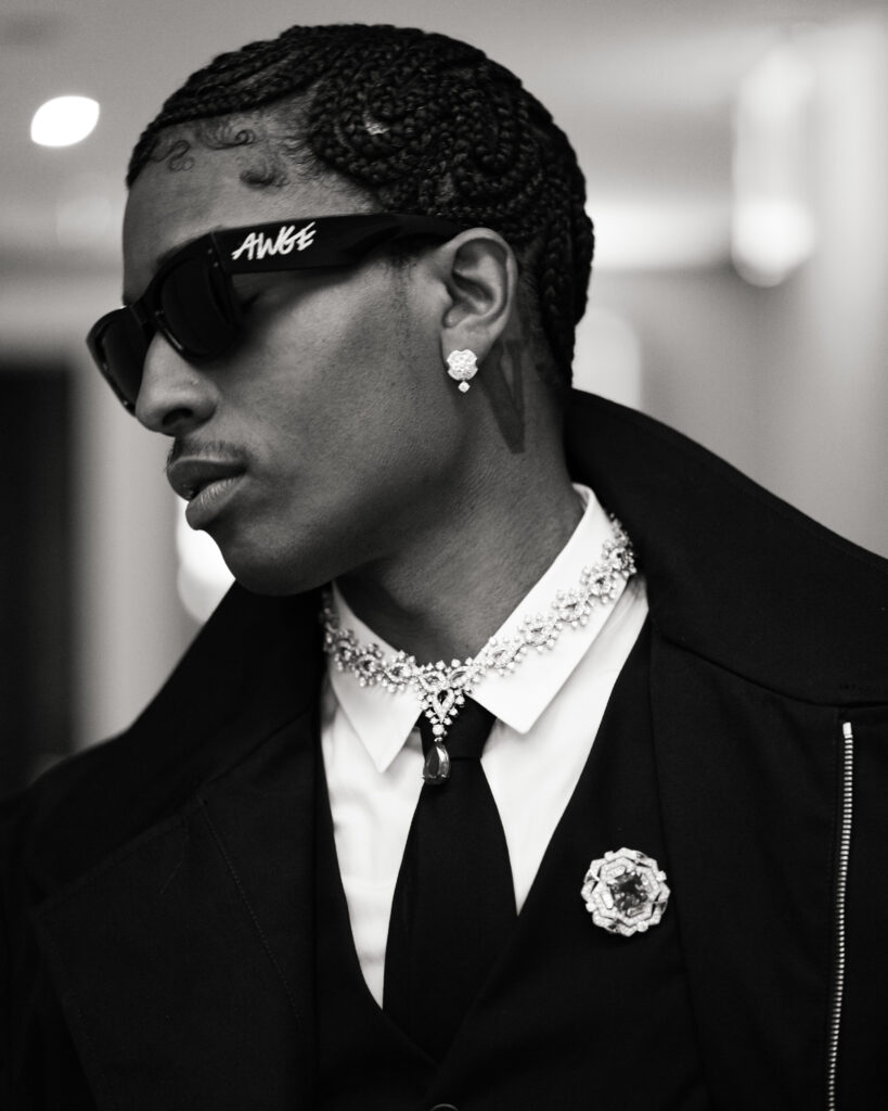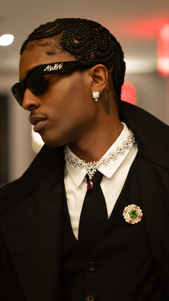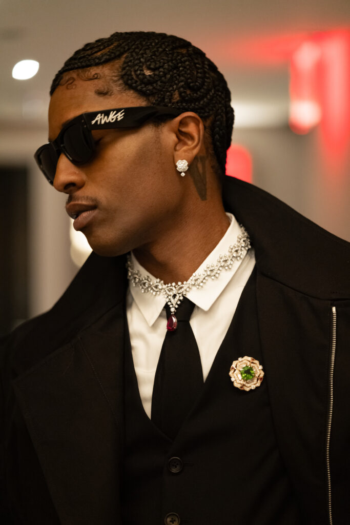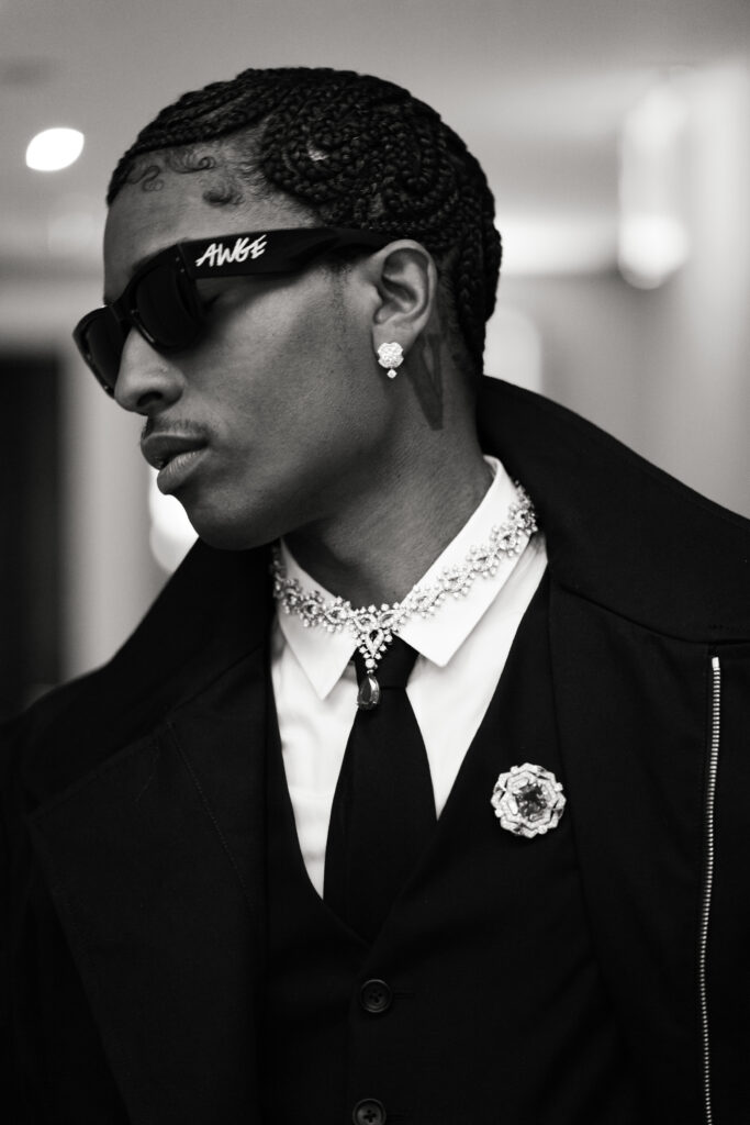 Aux côtés des icônes féminines, A$AP Rocky s’illustrait dans une élégance contemporaine et opulente, fusion parfaite entre masculin assumé et codes du luxe transgressés. Il portait une broche et des bagues serties de spinelles et diamants, dans une composition graphique évoquant l’âge d’or du cinéma italien. Enfin, Monica Barbaro, étoile montante du cinéma, éblouissait dans un collier cascade aux reflets nacrés, sublimé par une coupe d’exception et un sertissage quasi architectural.
