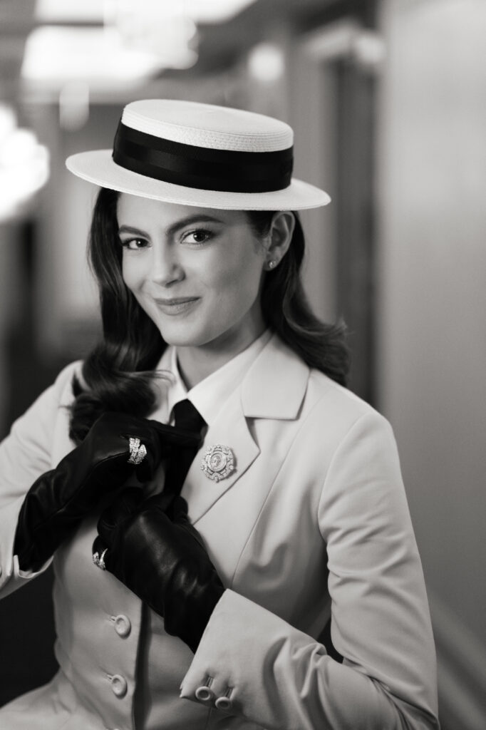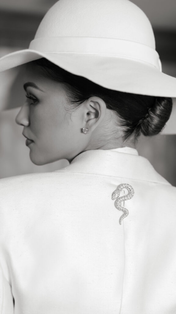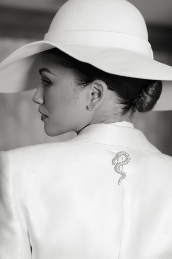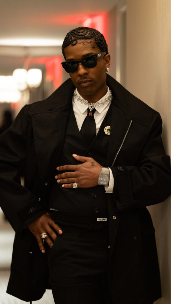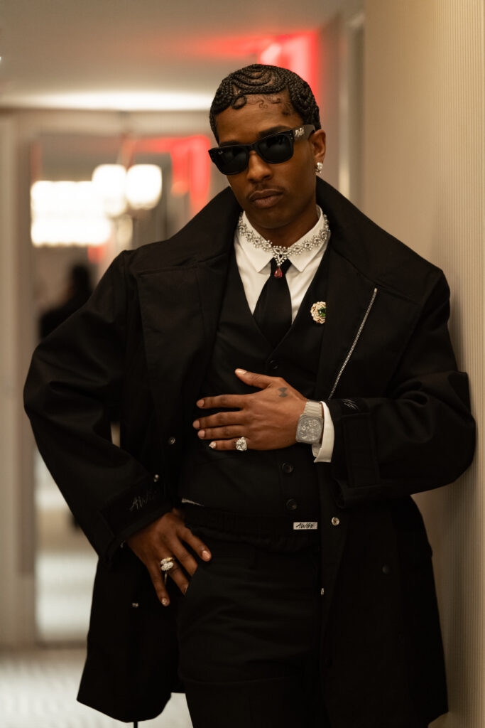 Aux côtés des icônes féminines, A$AP Rocky s’illustrait dans une élégance contemporaine et opulente, fusion parfaite entre masculin assumé et codes du luxe transgressés. Il portait une broche et des bagues serties de spinelles et diamants, dans une composition graphique évoquant l’âge d’or du cinéma italien. Enfin, Monica Barbaro, étoile montante du cinéma, éblouissait dans un collier cascade aux reflets nacrés, sublimé par une coupe d’exception et un sertissage quasi architectural.