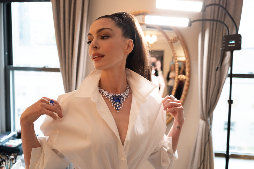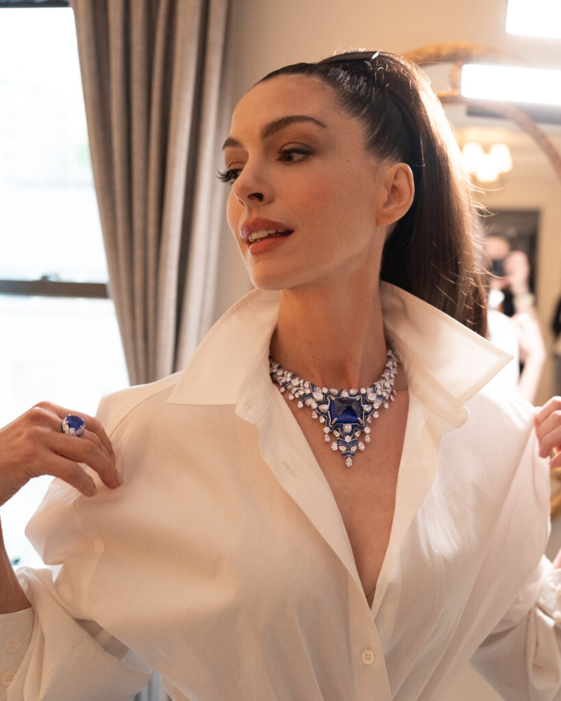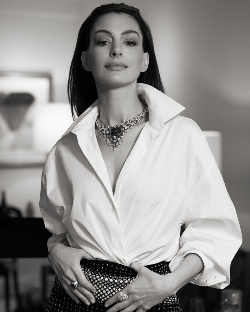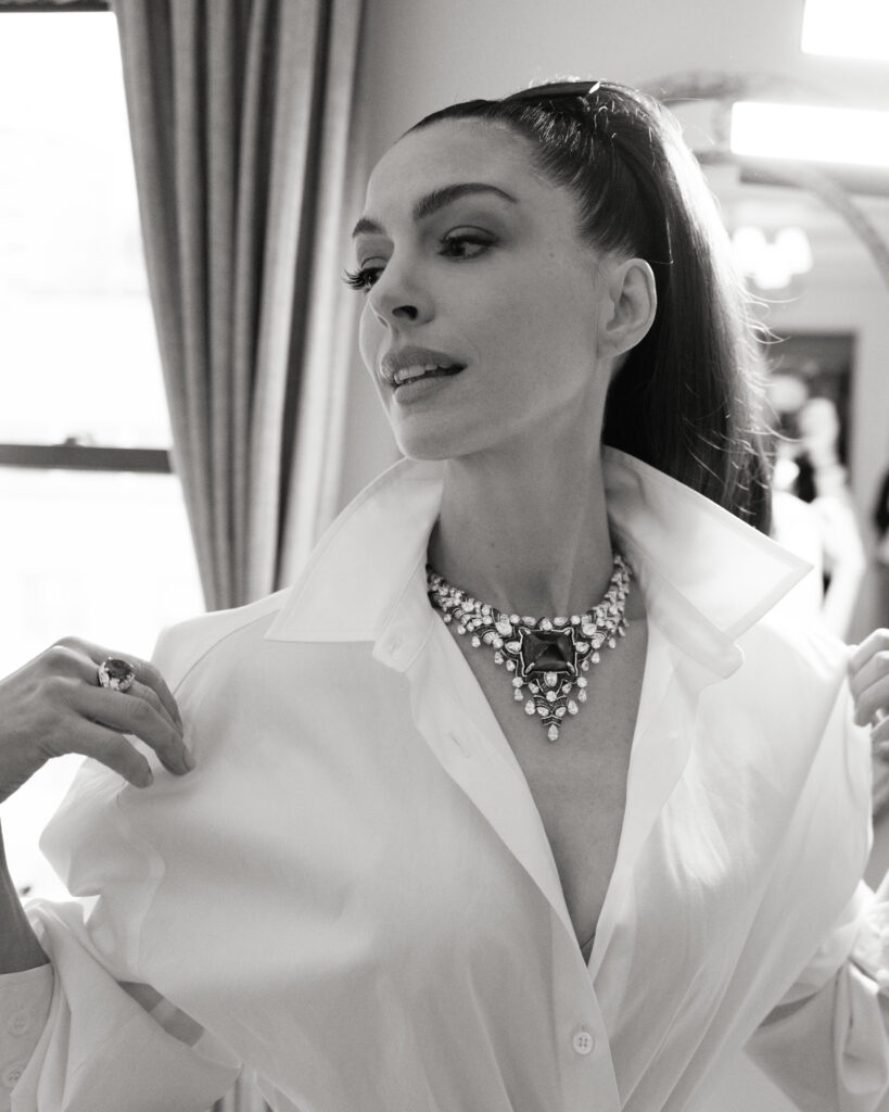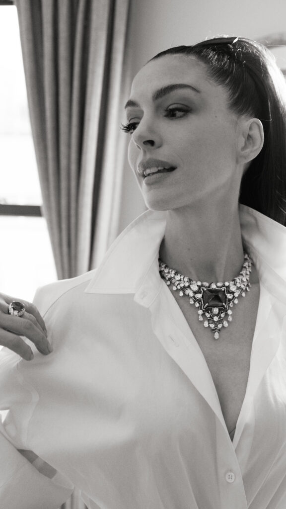 Anne Hathaway, ambassadrice de la Maison, rayonnait dans une parure aux pierres multicolores flamboyantes, où l’émeraude, la tourmaline et le diamant dansaient sur des lignes architecturales. Zendaya, muse intergénérationnelle, incarnait quant à elle une vision futuriste de la déesse moderne, arborant un collier asymétrique aux volumes sculpturaux, hommage à l’héritage antique de Bvlgari réinterprété avec audace.