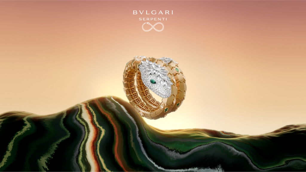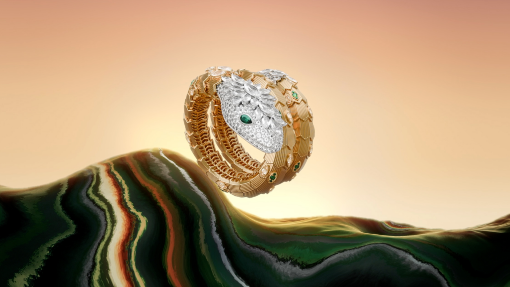 - Le secret de la création joaillière : une exploration immersive du collier Serpenti Infinito, révélant la minutie du sertissage, la finesse des articulations et l’art du mouvement que maîtrisent les ateliers Bvlgari.
