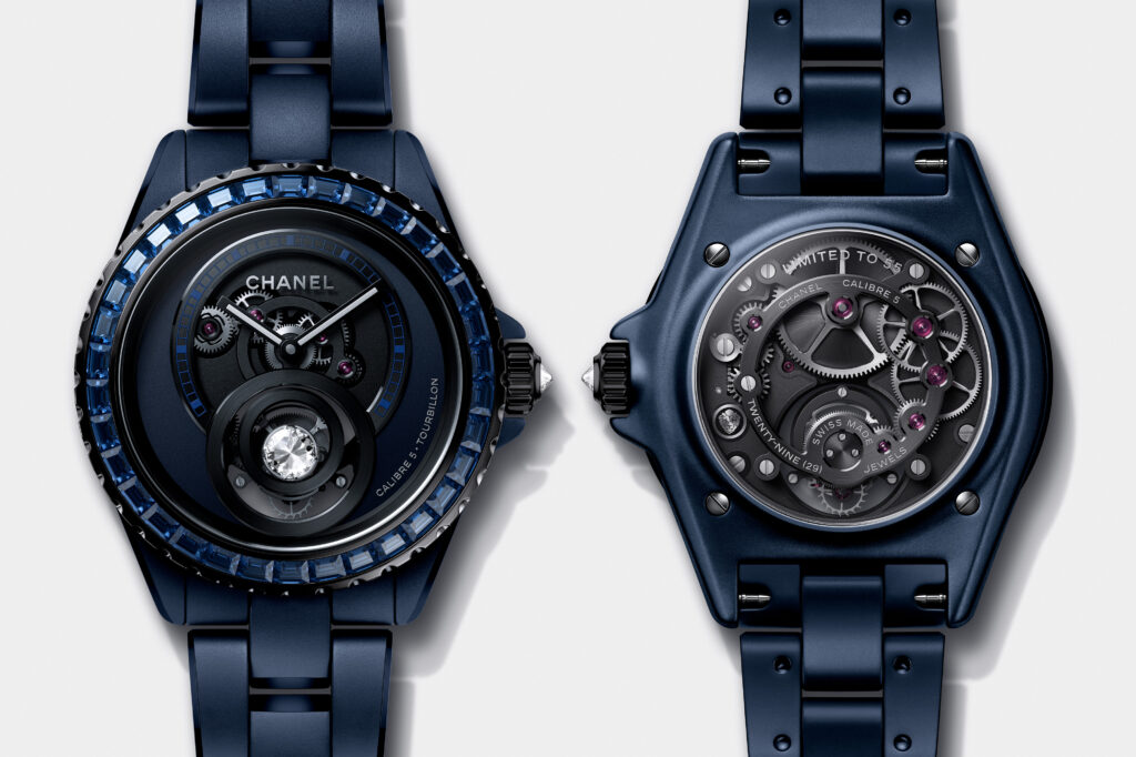 La J12, iconique depuis 2000, revêt pour 2025 une parure précieuse où le diamant devient tissu de lumière. Deux versions, la 38 mm taille baguette (630 diamants) et la 33 mm taille brillant (1 661 diamants), concentrent 148 heures de sertissage manuel. Le Calibre 12.1 et 12.2 y est sublimé par des masses oscillantes serties de pierres, visibles à travers un fond saphir. La prouesse technique rivalise avec la grâce graphique, scellant une alchimie entre or blanc, transparence et intensité joaillière.