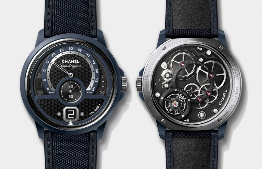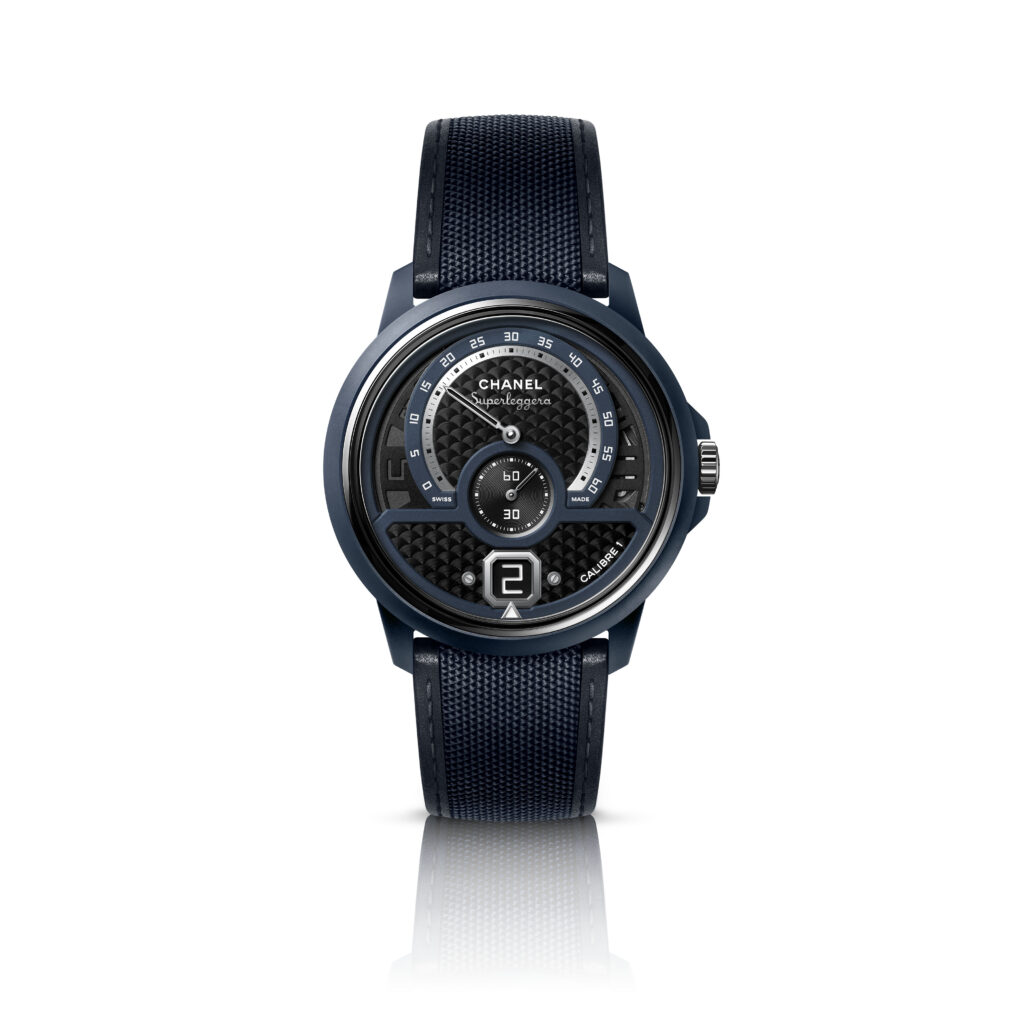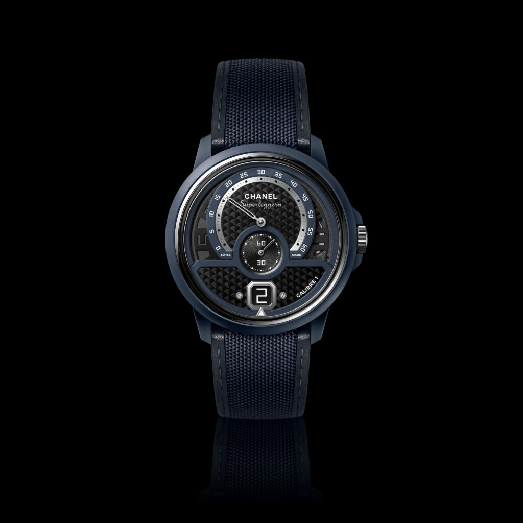 Pour l’homme CHANEL, l’édition 2025 du modèle Monsieur se pare d’un bleu profond, fruit de 5 ans de recherche sur la céramique. Dotée du Calibre 1 avec heures sautantes et minutes rétrogrades, cette montre rend hommage à l’univers automobile. Boîtier en céramique mate, cadran guilloché et bracelet en nylon tressé soulignent une masculinité sophistiquée et technique.