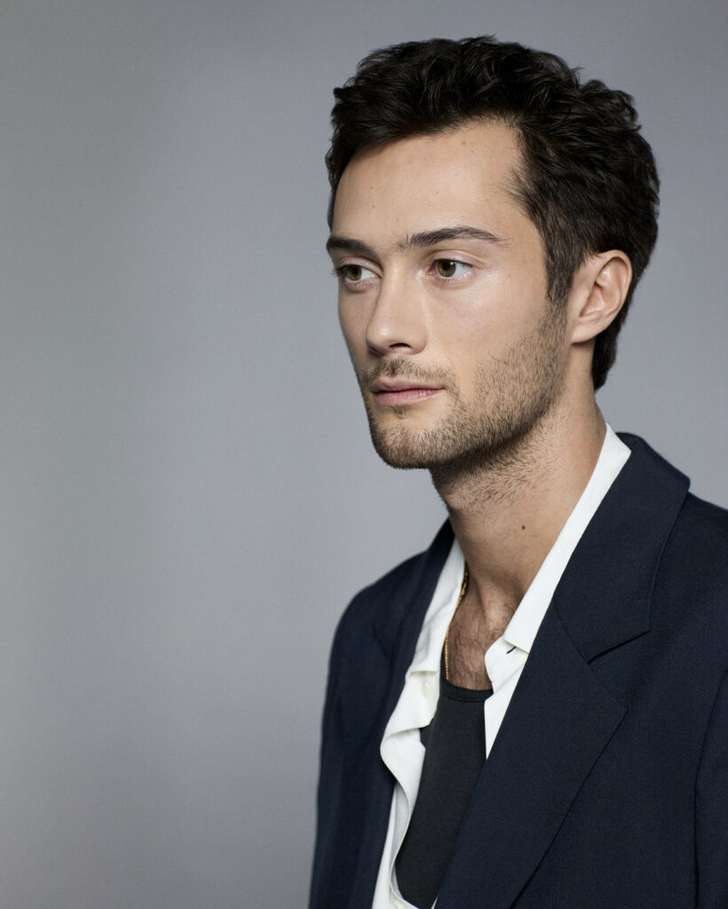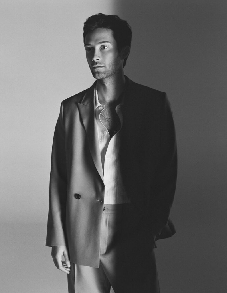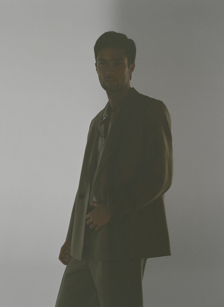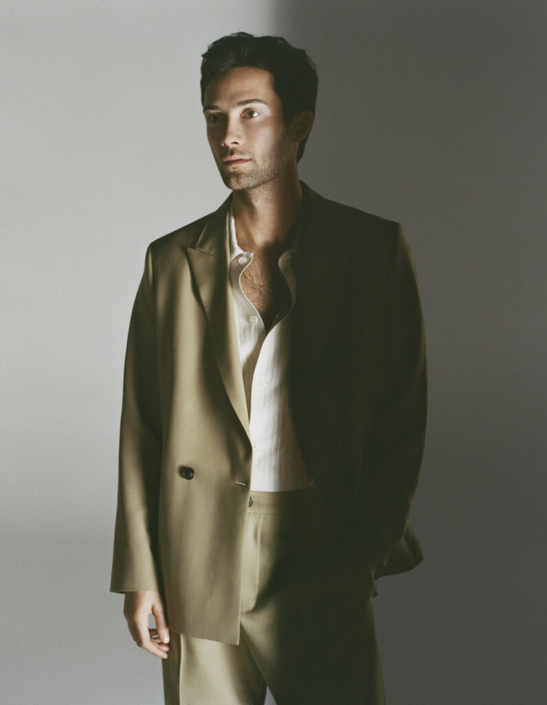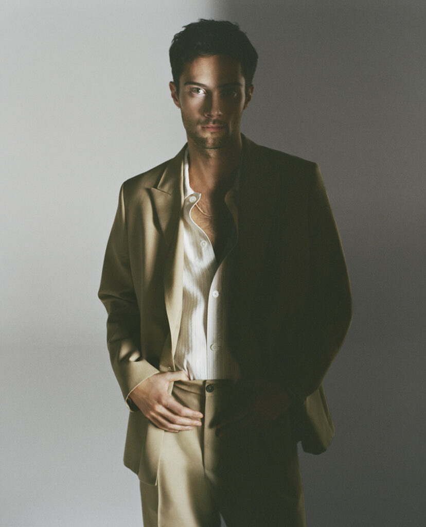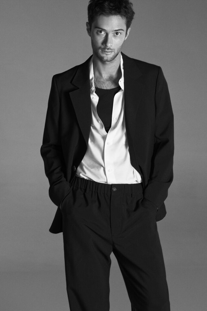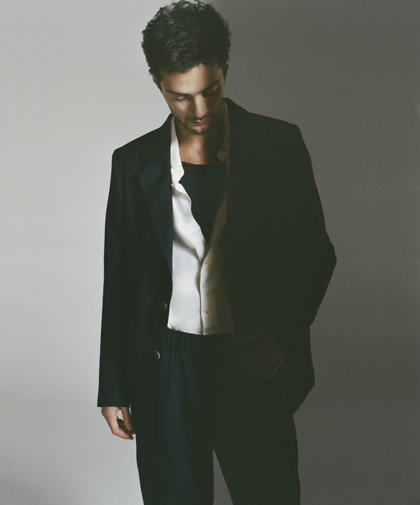 Face à elle, Oli Green offre un contrepoint masculin subtil et moderne. Son style épuré – veste workwear, denim brut, chemise oversize – s’ancre dans une esthétique clean, presque effortless. Ensemble, ils composent une vision harmonieuse du couple contemporain, entre romantisme discret et complicité assumée.