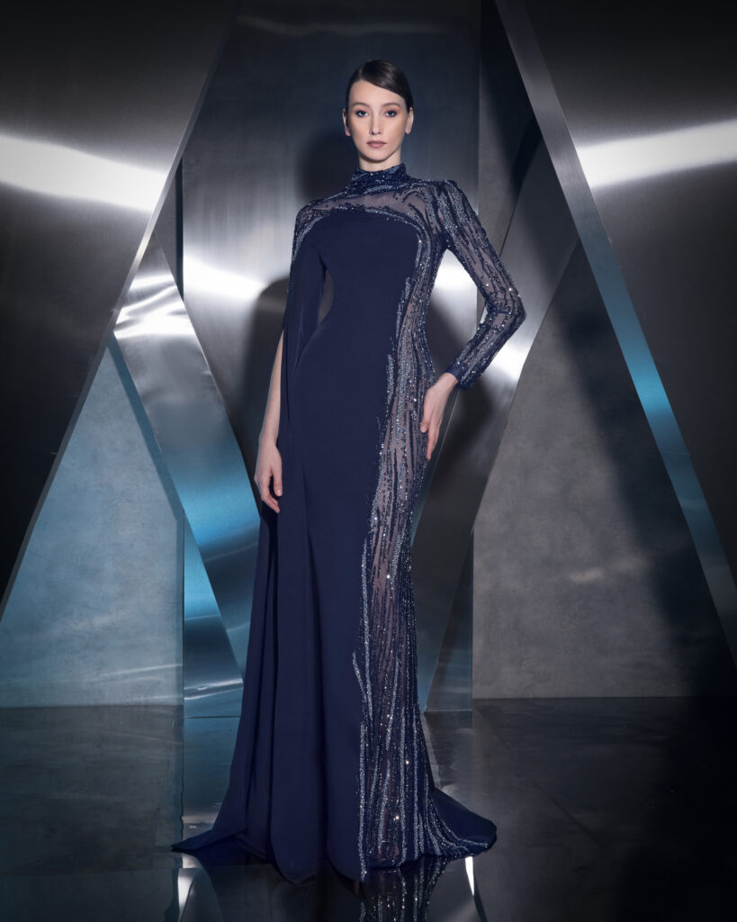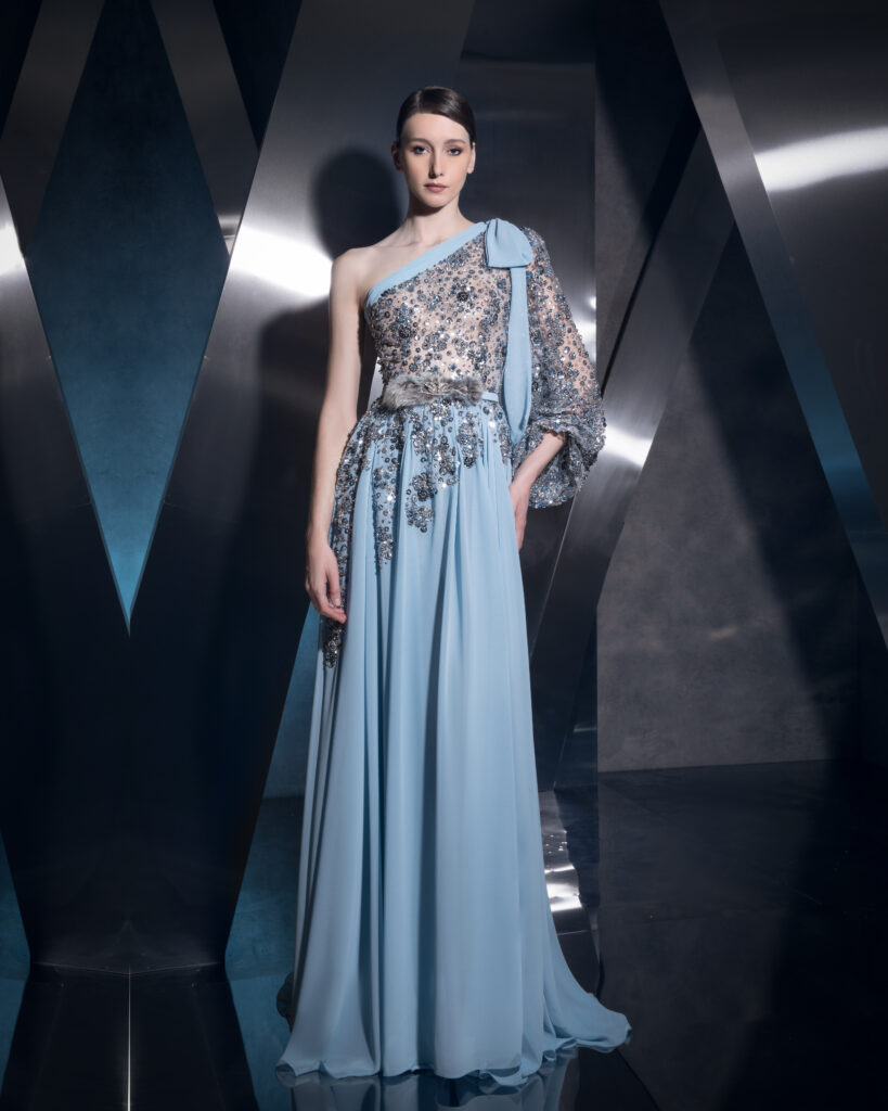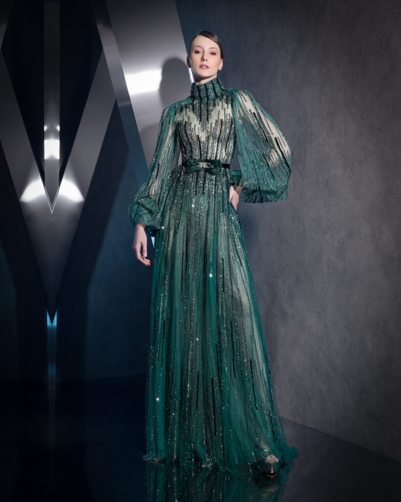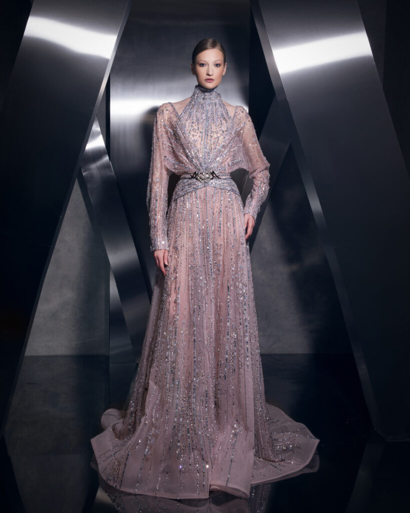 Chaque silhouette est pensée comme un mouvement d’une composition globale. Rien n’est laissé au hasard. Le résultat : une collection qui se lit comme un poème symphonique, où chaque look répond à l’autre, dans un dialogue de textures, de lumières et d’intentions.