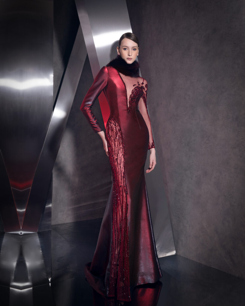 Pour sa collection automne-hiver 2025, Ziad Nakad orchestre un véritable concerto stylistique baptisé Harmony. Véritable ode à la cohésion des contraires, cette proposition ready-to-wear transcende les codes traditionnels du vestiaire d’hiver en empruntant à la musique son vocabulaire narratif. Ouvrages structurés et broderies délicates se succèdent comme autant de mouvements dans une symphonie où la puissance s’accorde à la douceur, et la précision à l’émotion.