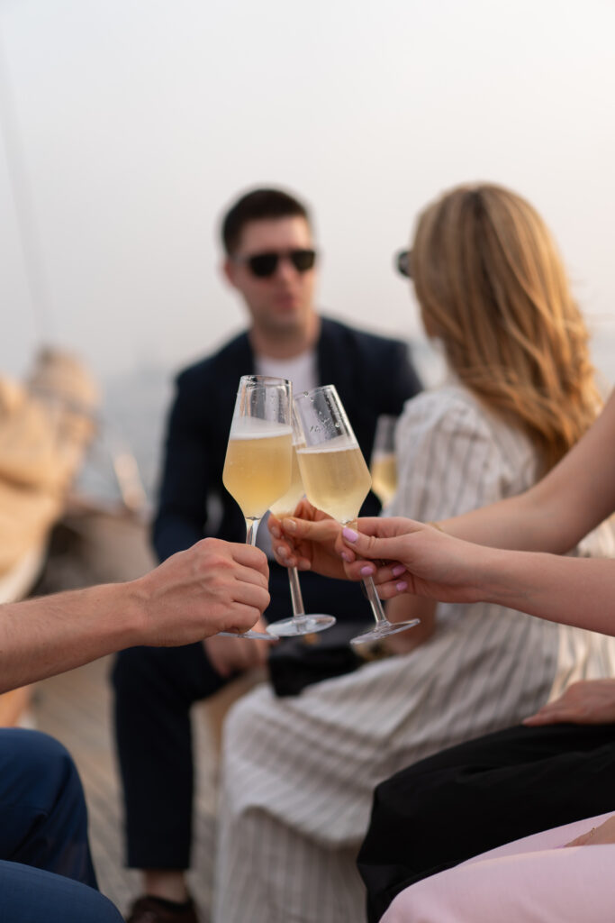 Depuis la North Cove Marina, enclave discrète au cœur de Tribeca, le voilier s’élance chaque soir à 18h30 pour une traversée de deux heures au fil des eaux emblématiques du port de New York. Panorama unique sur les tours de verre de Manhattan, frisson patriotique face à la silhouette de la Statue de la Liberté : chaque moment est une carte postale vivante, sublimée par un art de vivre à la française.