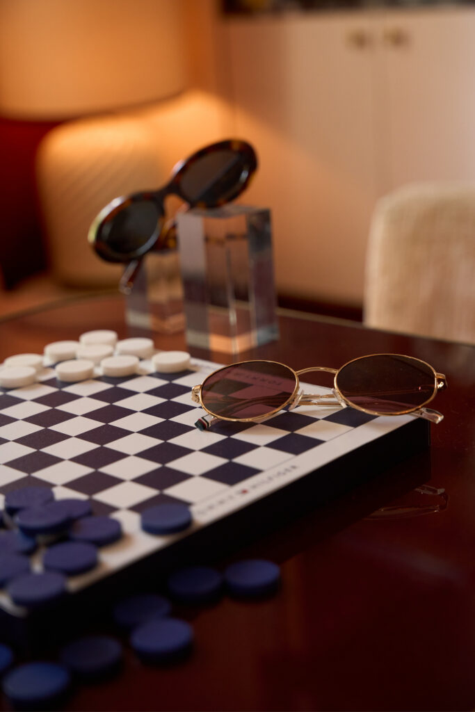 Répartie en trois lignes — Preppy, Sporty Leisure et Everyday Casual — la collection revisite les codes emblématiques de la marque. Les modèles Preppy jouent sur des formes carrées, rondes ou œil-de-chat, ponctuées du TH Monogram et du ruban tricolore signature. L’esthétique reste fidèle à l’ADN de la marque : entre classicisme américain et twist contemporain.