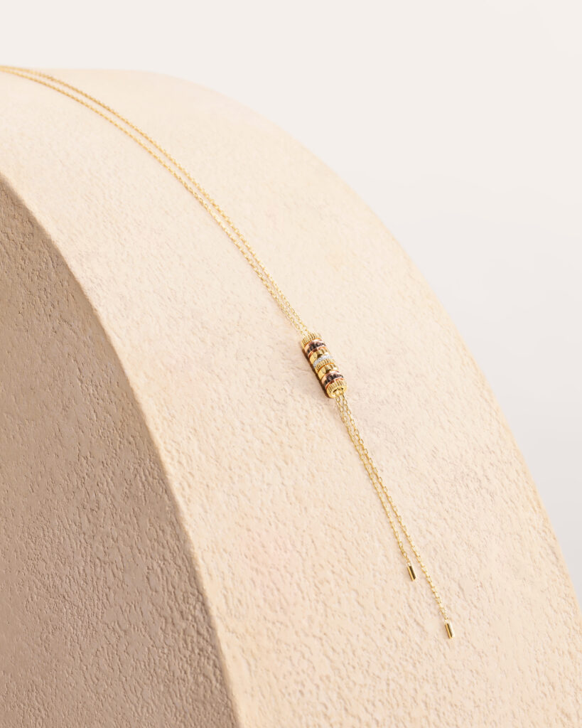 Bracelets angulaires, bague double-doigt, colliers flexibles ou encore créoles et puces modulables : les nouvelles déclinaisons explorent toutes les possibilités de structure, de mouvement et de modularité. Le collier cravate, doté d’un module coulissant empilé des motifs Quatre, pousse même l’exercice jusqu’à l’ergonomie personnalisable.