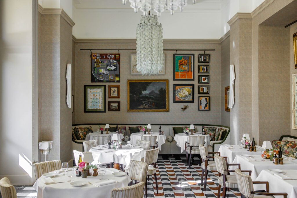 Le restaurant Irene, inspiré par Lady Forte, figure maternelle et visionnaire de la famille Forte, rouvre ses portes dans un décor réinterprété par Olga Polizzi. Boiseries en noyer, marbre noir et blanc, accents de rouge profond, tissus Loro Piana et lustres vénitiens confèrent au lieu une élégance chaleureuse et domestique. La véranda extérieure, avec sa vue panoramique sur la place, invite à des déjeuners al fresco empreints de douceur.
