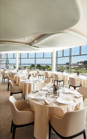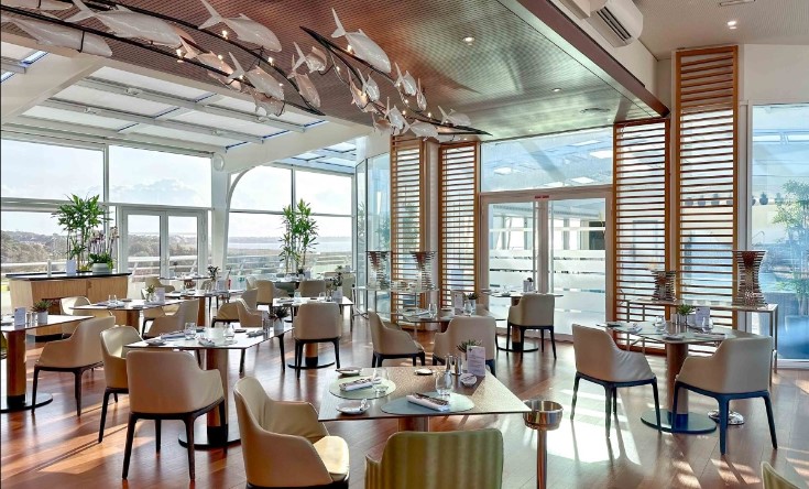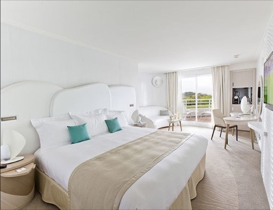 De larges couloirs conduisent aux chambres et aux suites, ou plutôt devrais-je dire, aux cabines qui portent les jolis prénoms de « Grand large, Terre et mer, Fil de l’eau, Passerelle,… ». Très spacieuse, ma chambre arbore une grande tête de lit en cuir blanc et de jolis éléments en bois clair. Pour la salle de bains, ce sont les aménités de la Haute Parfumerie Chopard qui ont été choisies. Pour la vue, nos amis américains s’exclameraient « Room with a view » tant depuis le balcon, le spectacle sur l’Océan et la presqu’île est grandiose !