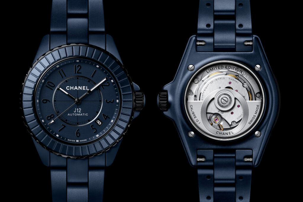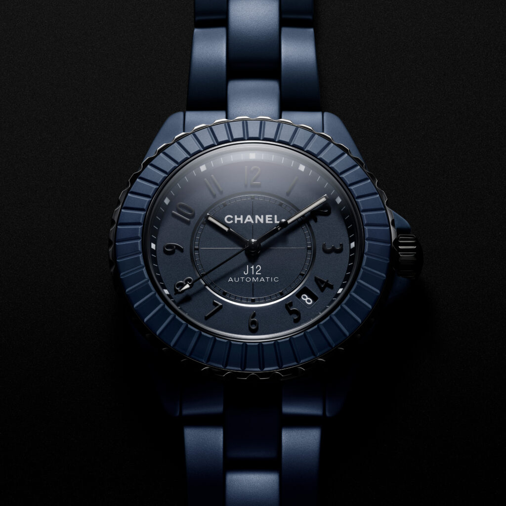 CHANEL poursuit son exploration des contrastes sensoriels avec la J12 BLEU CALIBRE 12.1, une pièce de 38 mm alliant rigueur mécanique, sobriété architecturale et éclat minéral. Revisitée dans un bleu mat profond, cette édition limitée incarne l’essence même de la collection J12 : radicale, précise et viscéralement contemporaine.