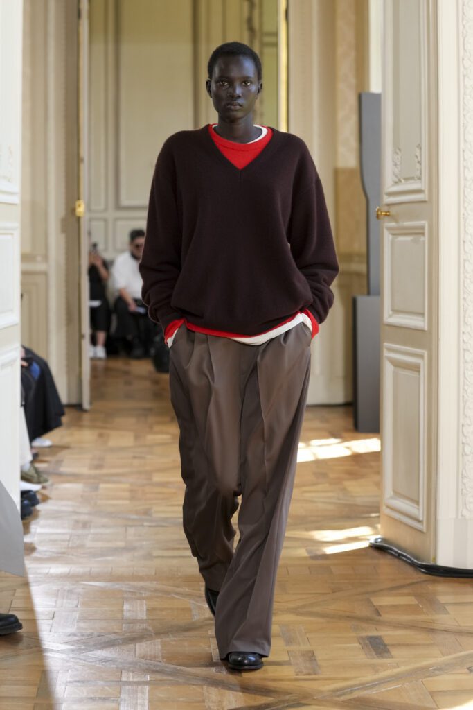 La ligne de pantalons introduit de nouvelles coupes : certains avec jambes incurvées, d’autres aux ourlets torsadés. En réponse à l’intérêt croissant de la clientèle féminine, la collection Printemps–Été 2026 élargit sa gamme de tailles — désormais, davantage de modèles sont proposés en taille XS.