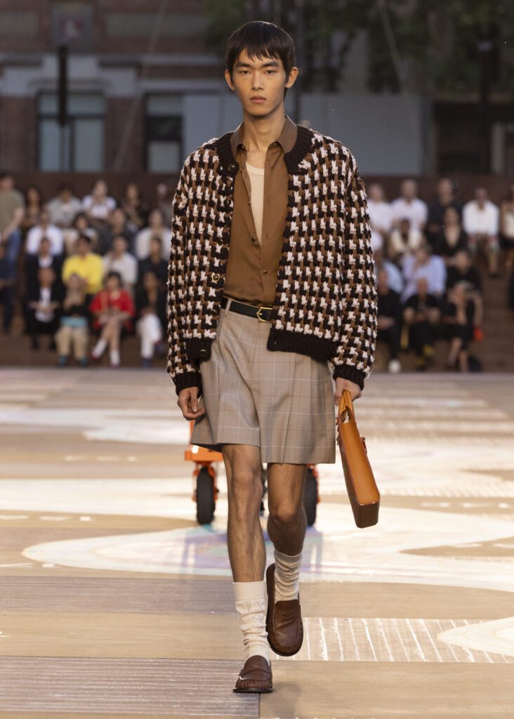 Côté accessoires : bonnets en maille, foulards aux motifs de « Serpents et échelles », bijoux sertis d’onyx, d’améthyste ou d’œil-de-tigre. Les lunettes, évoquant les cantines de voyage, adoptent des nuances fanées. La bande-son du défilé — un mix des voix de Voices of Fire, Clipse et Doechii, conçu avec A. R. Rahman et Tyler, the Creator — renforce ce message d’unité transculturelle.