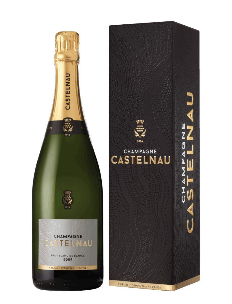 Issu principalement de la Montagne de Reims, terroir atypique pour ce cépage, ce Blanc de Blancs se distingue par des raisins plus charnus et solaires, enrichis d’apports du Vitryat et de la Côte des Blancs. À cette matière première généreuse s’ajoute un savoir-faire maison : un vieillissement de plus de dix ans sur lies, signature du style Castelnau, qui confère à la cuvée rondeur, densité et maturité aromatique.