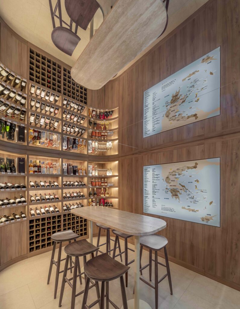 – Une cave à vin privatisable, forte de 100 références issues de Grèce et de Chypre, sélectionnées par Dionysos Mavrommatis.