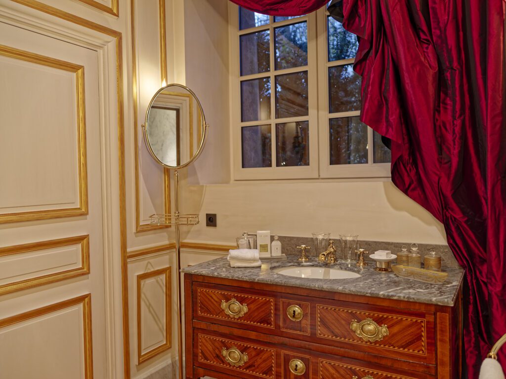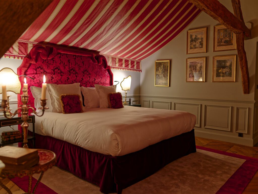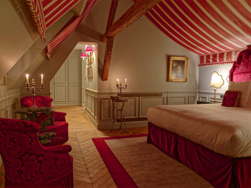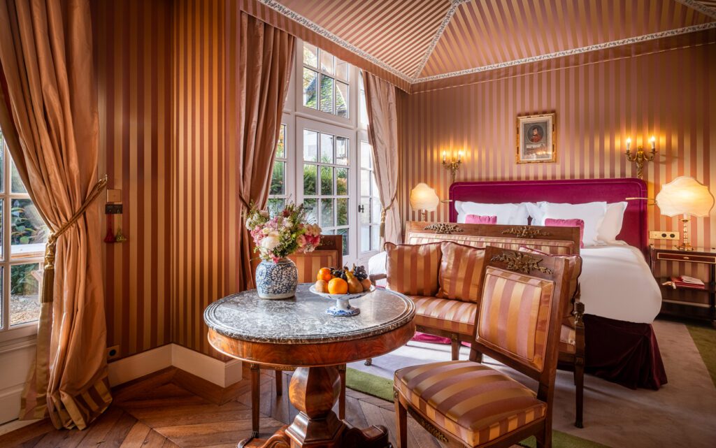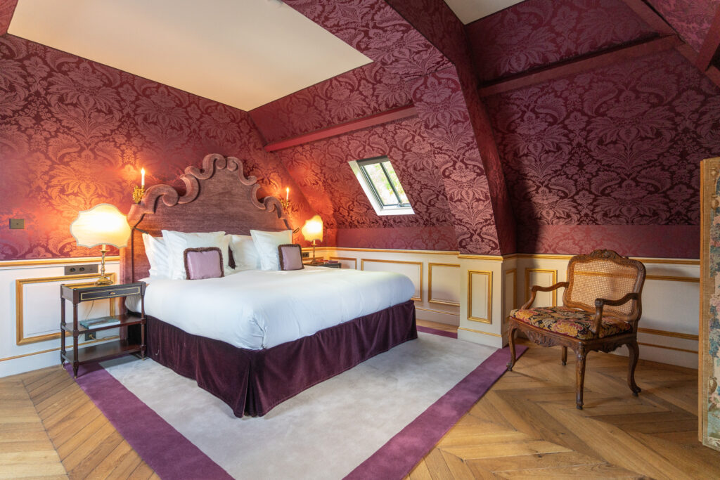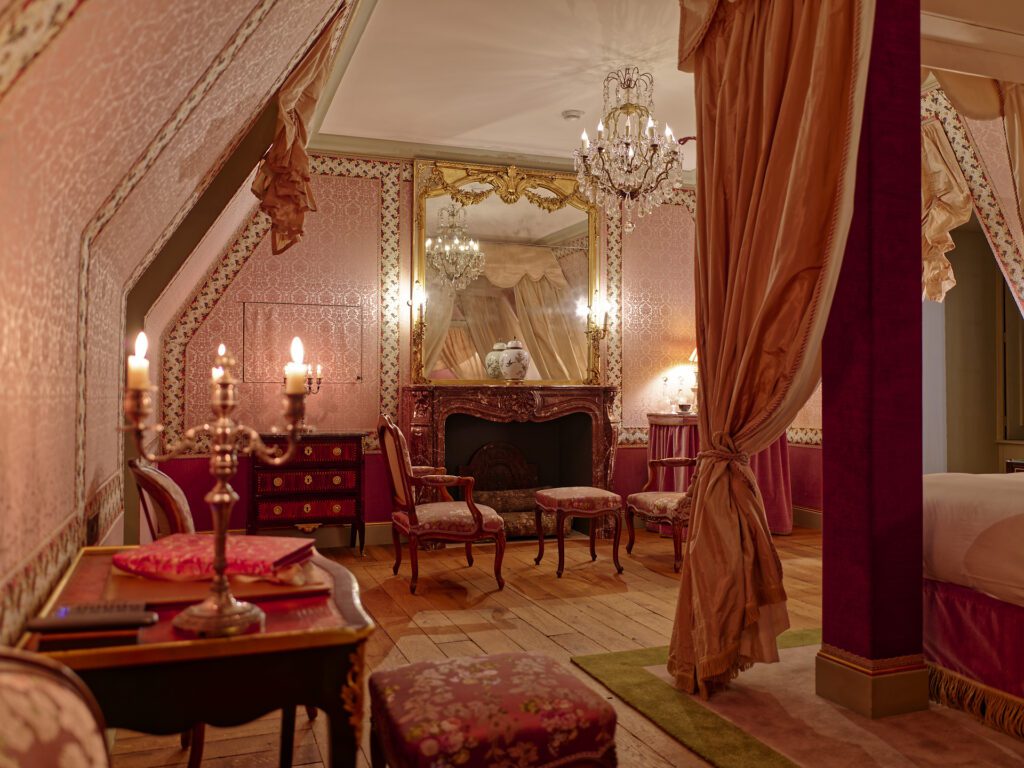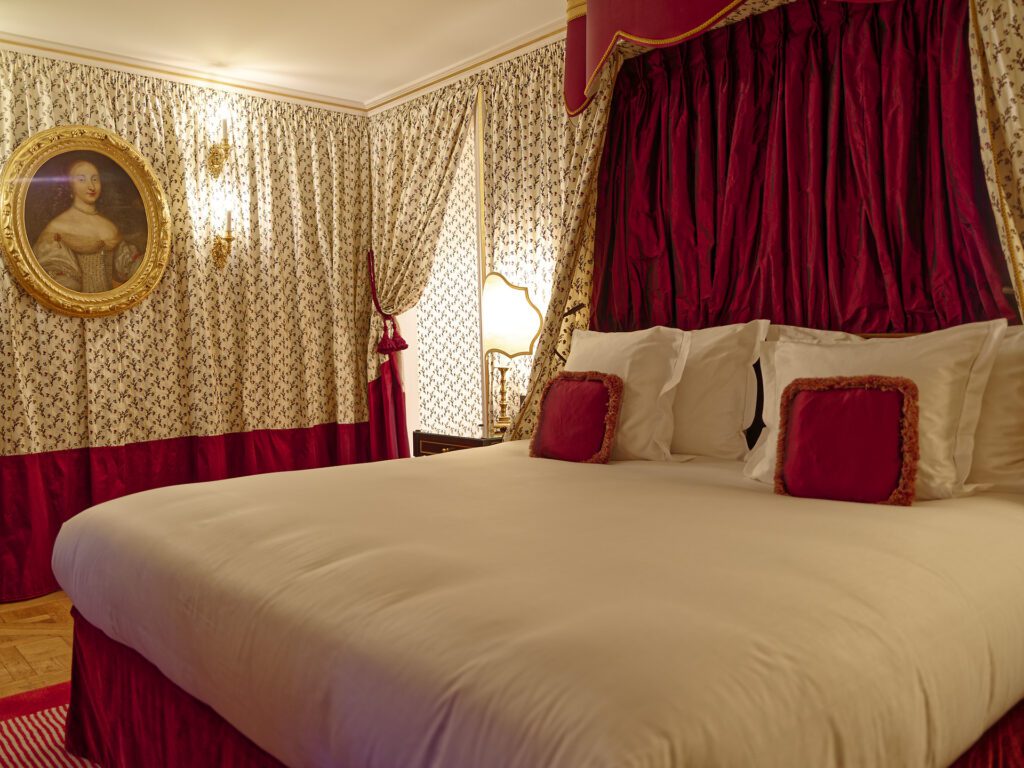 Les 20 suites et boudoirs, dédiés aux grandes favorites de l’histoire — de Madame de Pompadour à Madame de Montespan —, conjuguent mobilier d’époque, œuvres d’art, et tissus haute couture dans un confort contemporain.