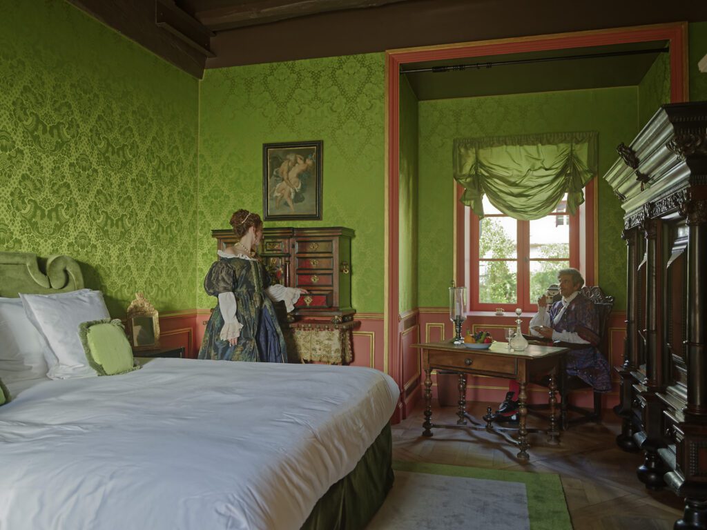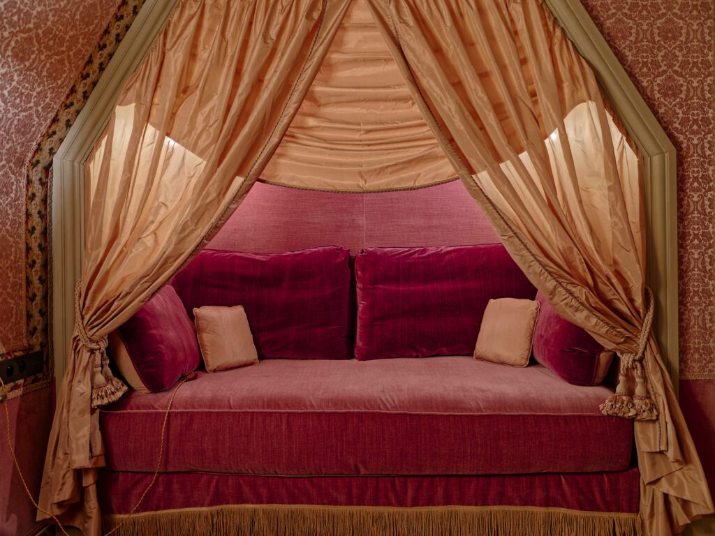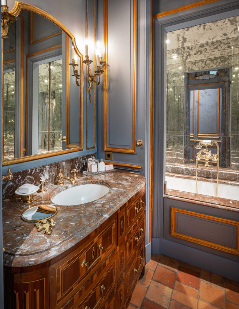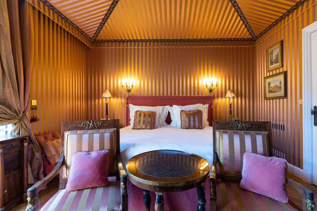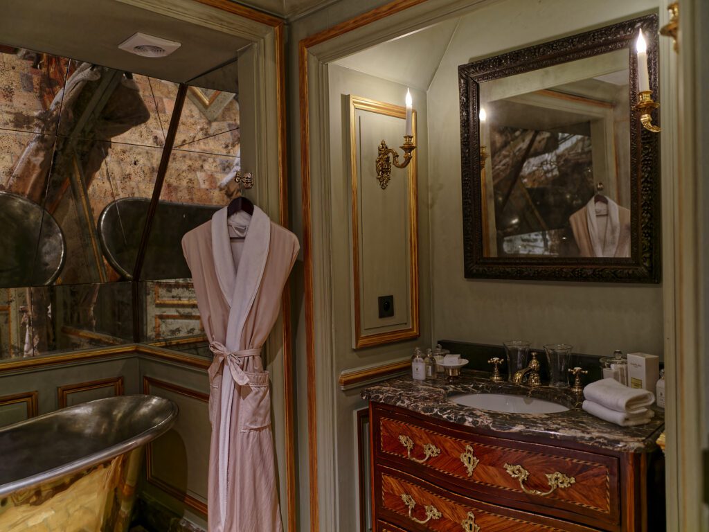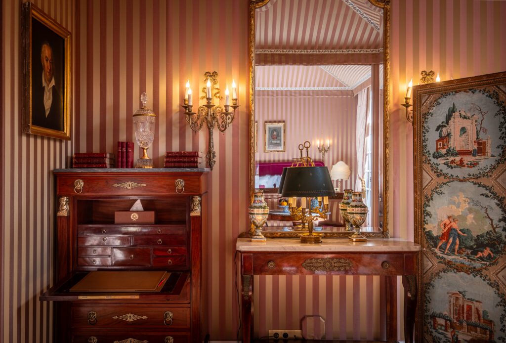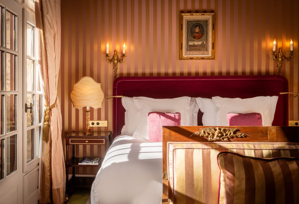 Les 20 suites et boudoirs, dédiés aux grandes favorites de l’histoire — de Madame de Pompadour à Madame de Montespan —, conjuguent mobilier d’époque, œuvres d’art, et tissus haute couture dans un confort contemporain.