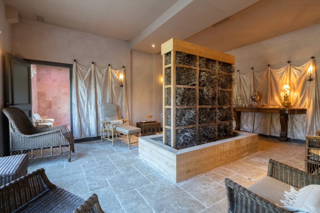 Au spa La Rosée, la Maison Valmont et Biologique Recherche signent des rituels de soin sur mesure dans un espace enveloppant, complété par une piscine chauffée et une halothérapie en sous-bois.