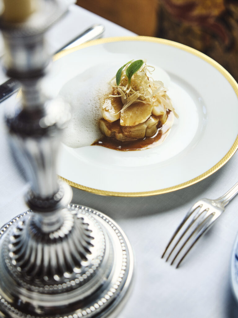 Le restaurant L’Amphitryon, piloté par le jeune chef Jeffrey Pestana, rend hommage à la grande cuisine française d’Escoffier en magnifiant les produits du terroir. À quelques pas, le bar à champagne Le Saint-Évremond, niché dans la bibliothèque historique, propose une immersion pétillante parmi plus de 60 références.