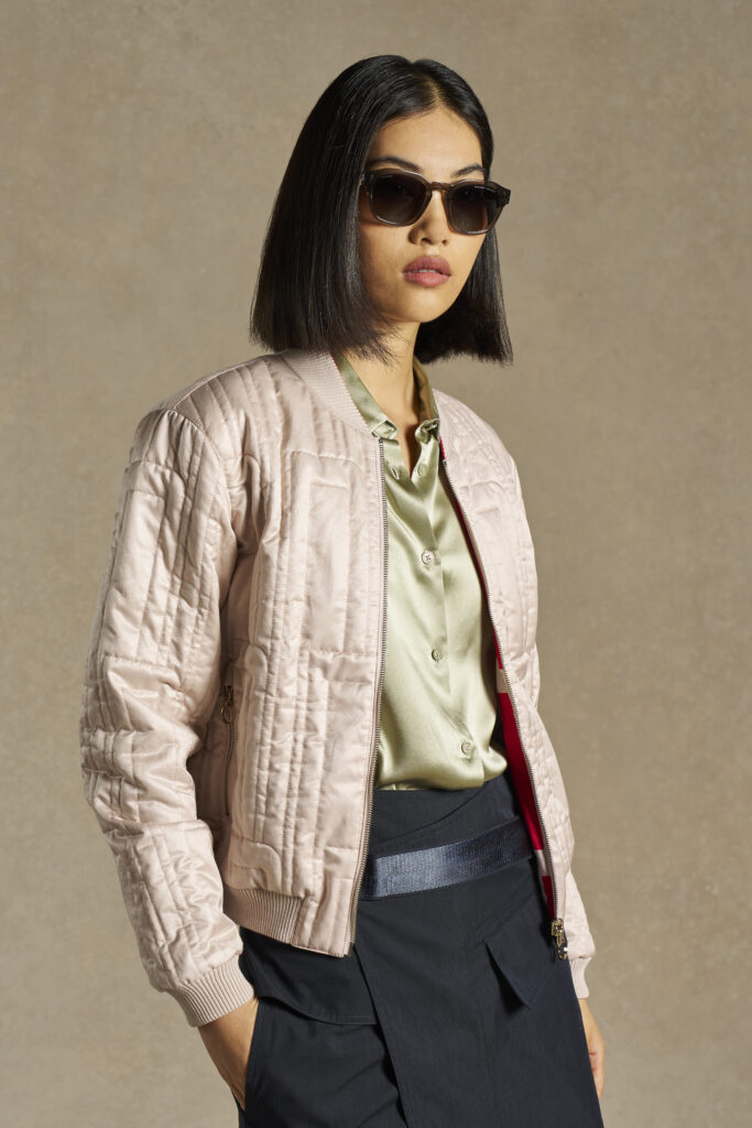 - La veste Knightsbridge Promenade (brun et rose poudré) et la Soho Chic (framboise et blush) offrent un matelassage sophistiqué et une fermeture zippée sur mesure en Sunset Gold, clin d’œil aux cadrans des Range Rover historiques.