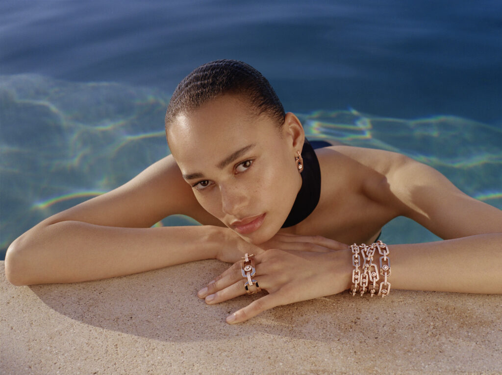 Au cœur du récit visuel, So Move déploie ses maillons d’or et de diamants en version architecture souple ; Fiery sublime l’ambivalence d’un diamant poire qui oscille entre délicatesse et force sculpturale ; Move Noa revient dans une déclinaison ciselée, hommage aux velours de soie 70’s réalisés à la main, chaque strie captant le soleil comme un flash cinéma . La ligne s’inscrit dans le sillage du vingtième anniversaire du Move, icône best-seller qui compte désormais plus de dix collections à son actif.