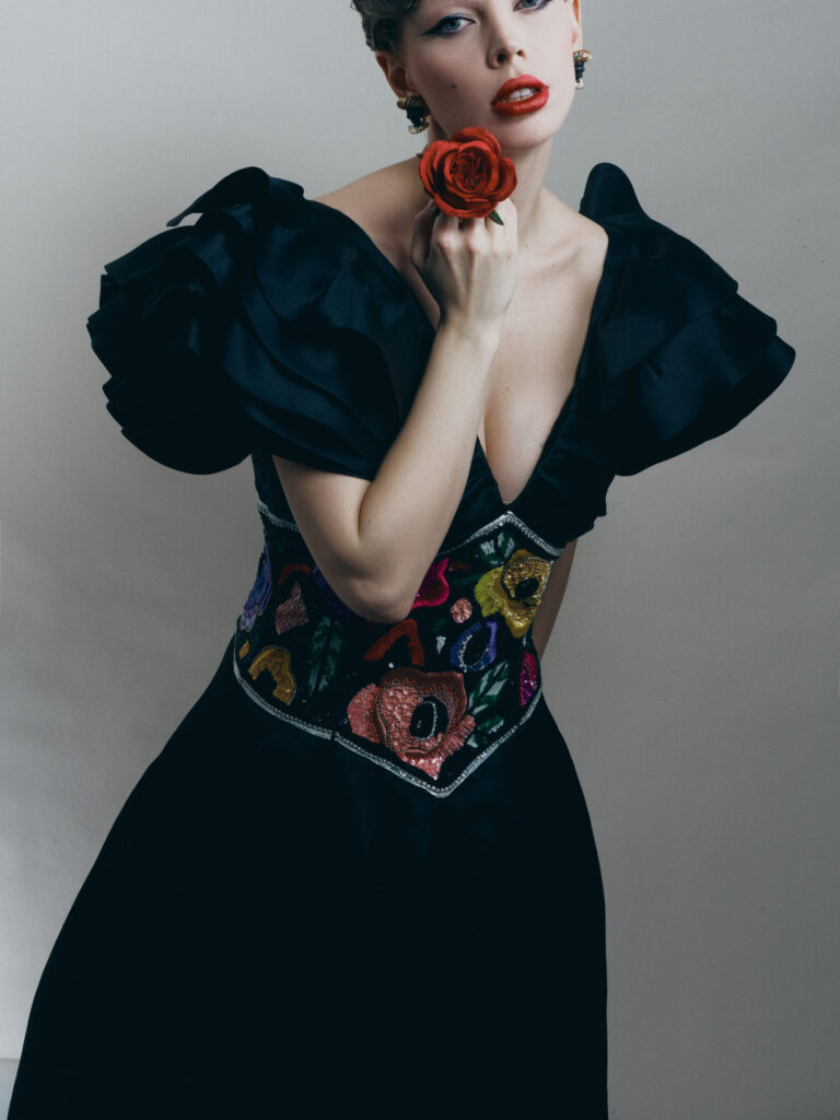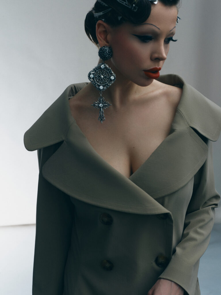 Toute la séance était incroyable, mais j’ai eu un coup de cœur pour le manteau-robe de Jean Paul Gaultier. C’était un moment où je me suis sentie à la fois sexy et mystérieuse. Rien que d’y penser, c’est envoûtant. Un vêtement peut complètement transformer la perception qu’on a de soi.