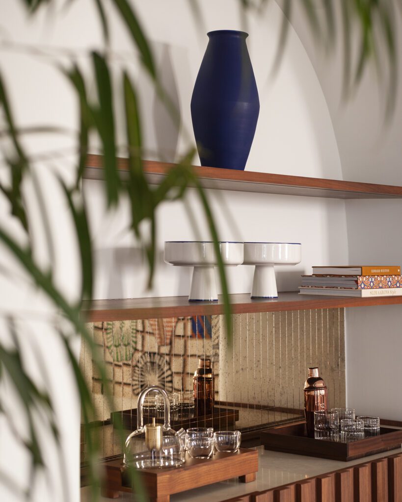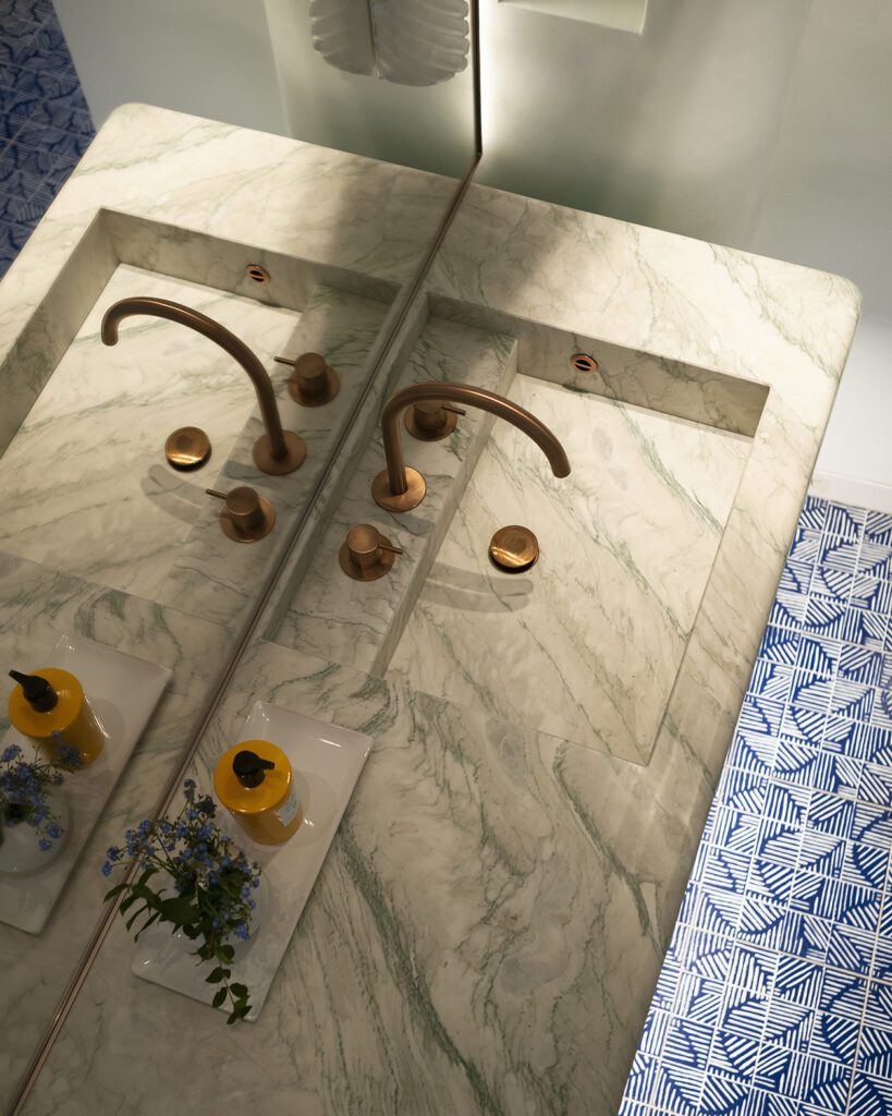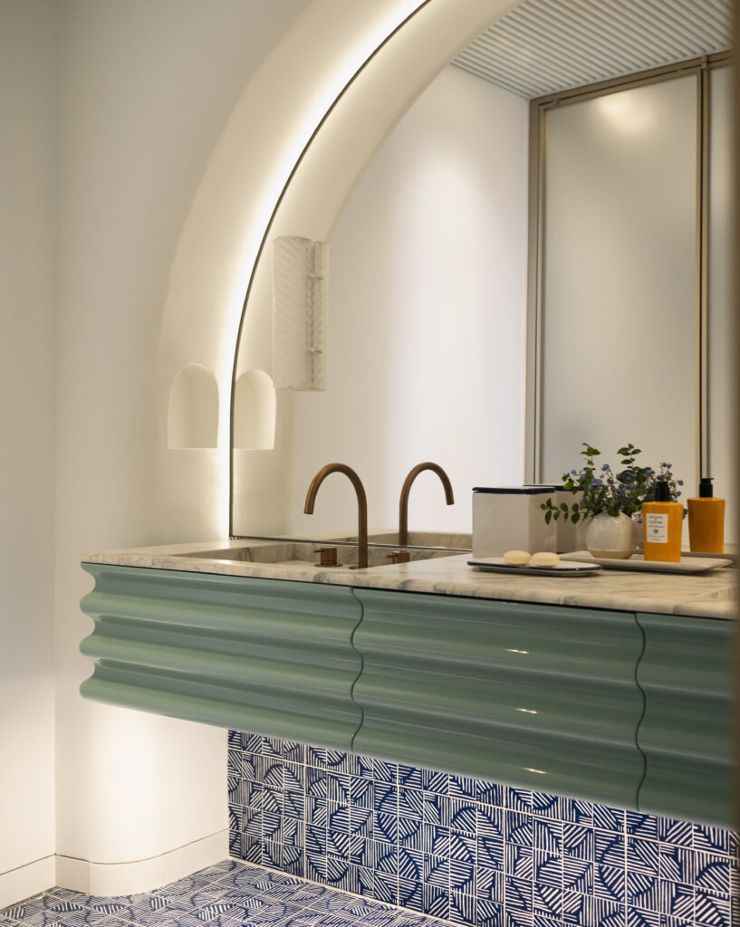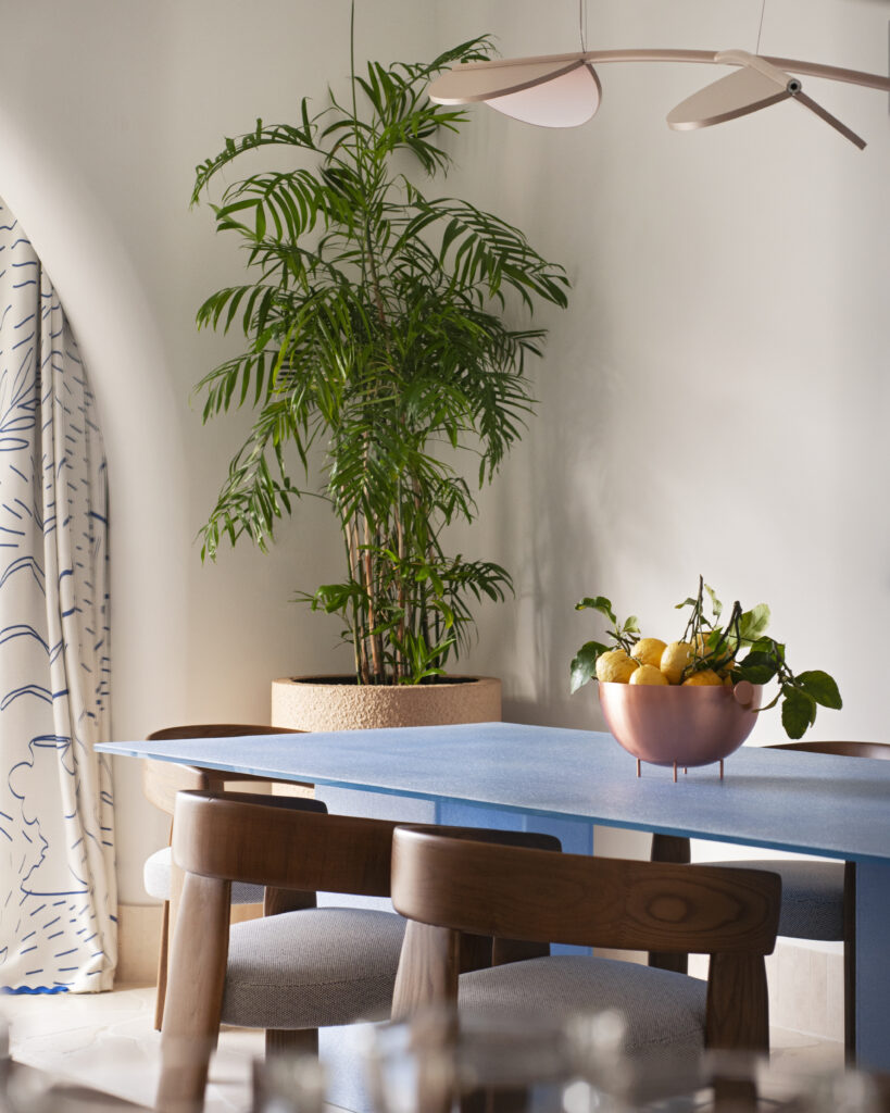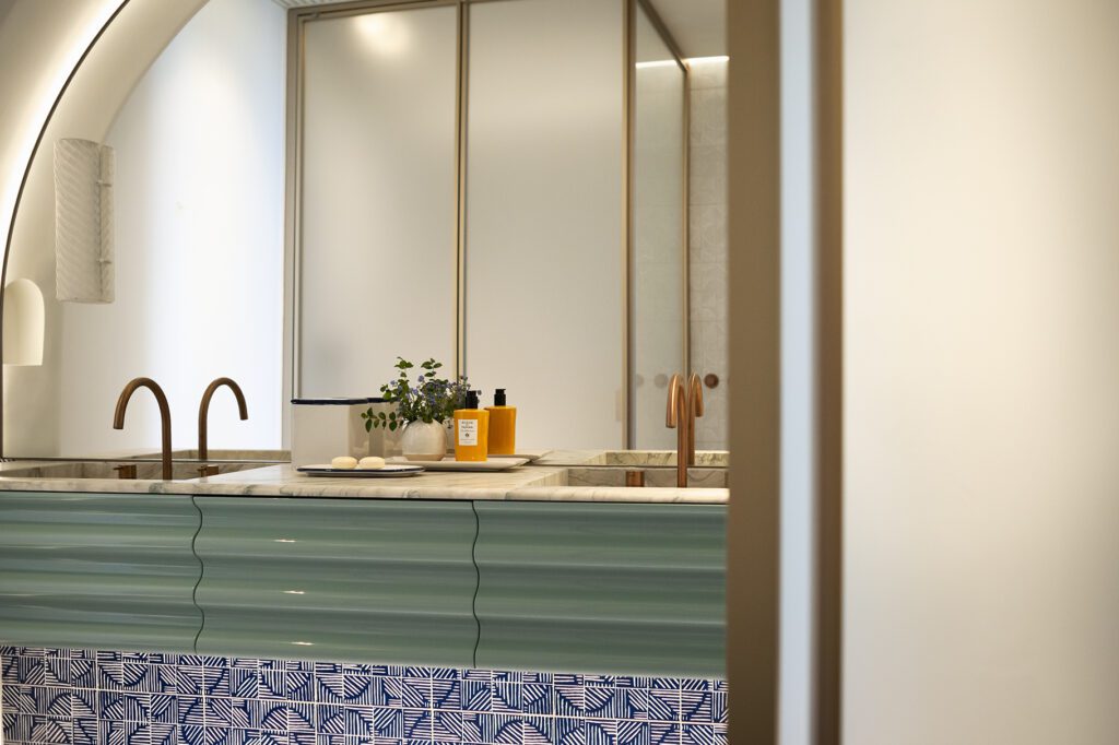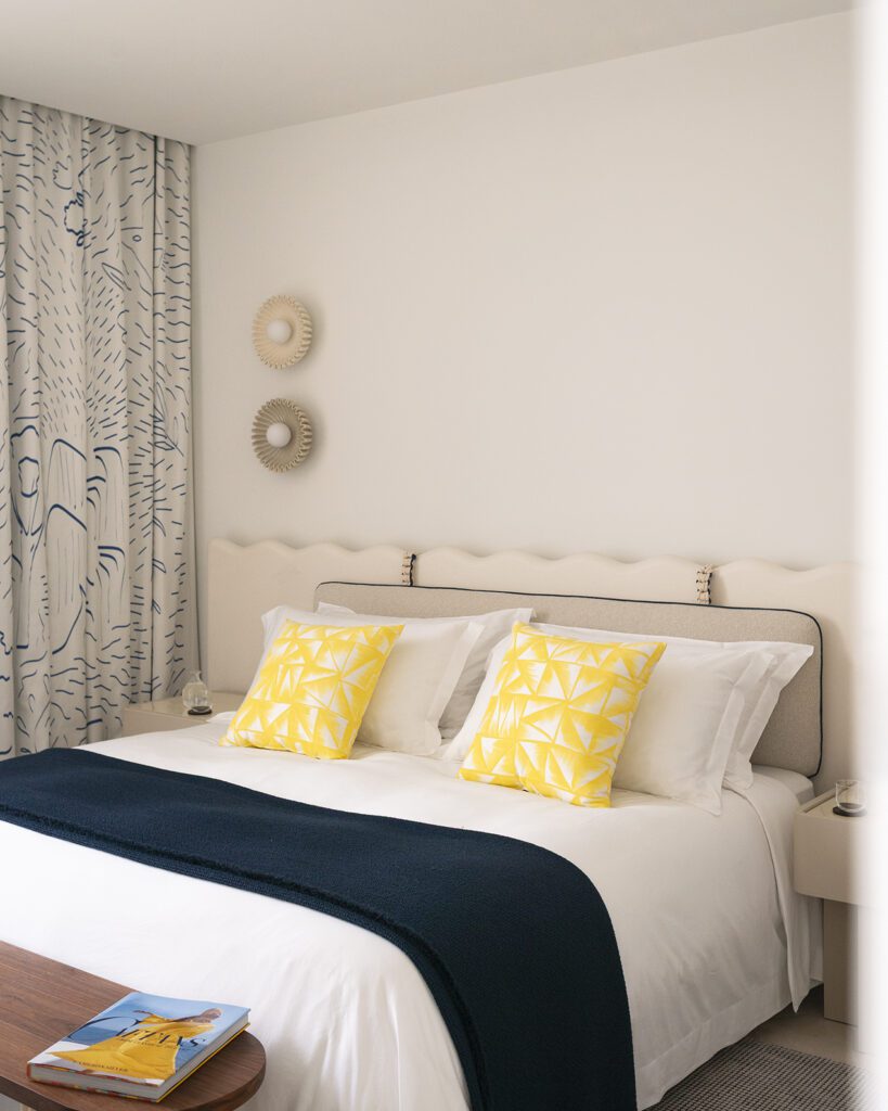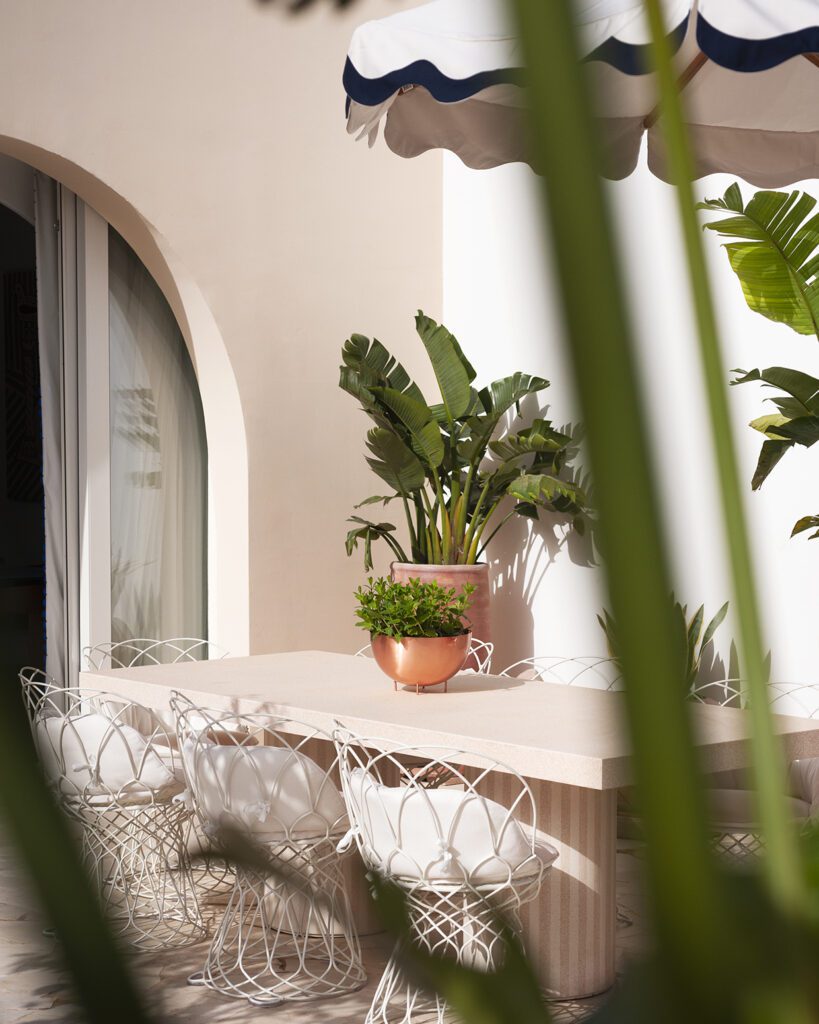 La créatrice espagnole injecte son langage formel dans ce contexte chargé d’histoire. Ses interventions, alliant rigueur fonctionnelle et sensualité italienne, revisitent les codes esthétiques capriotes : marbres lumineux, lignes épurées, palettes pastel et clins d’œil à la Méditerranée antique. Le résultat : une atmosphère de villégiature raffinée, entre discrétion monacale et opulence solaire. Mention spéciale à la Suite Paltrow, temple de lumière prolongé d’une piscine privative à débordement, ou encore à la Suite Callas, qui sublime le silence et le clair-obscur dans un hommage théâtral à la diva.