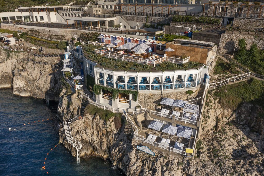 Côté table, le palace déploie un éventail culinaire à la hauteur de sa réputation. Le restaurant A-Ma-Re, près de la grotte bleue, propose une ode sensorielle à la gastronomie italienne — espadon, citron, olives et câpres en majesté. Plus haut, le rooftop Zuma, signé Rainer Becker, installe l’élégance tokyoïte dans un dialogue visuel avec le crépuscule capriote. La présence du Beach Club Il Riccio, revisité par la Plage Dior, parachève cette offre par une touche mode et balnéaire rare, entre parasols fleuris et luxe bohème.