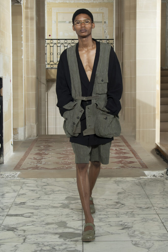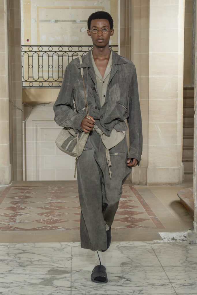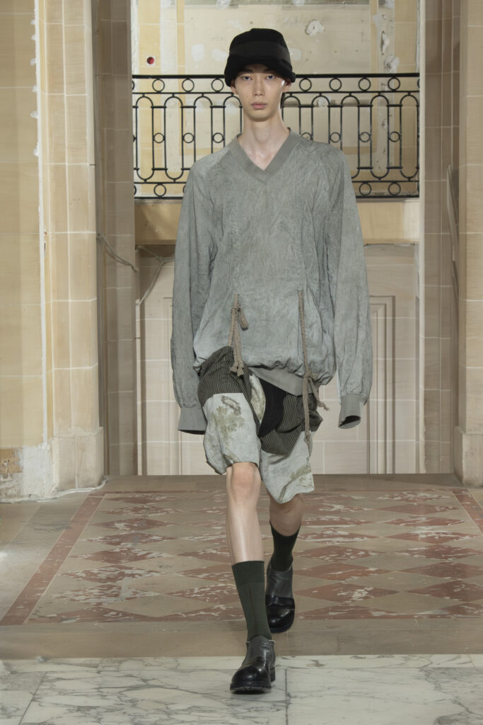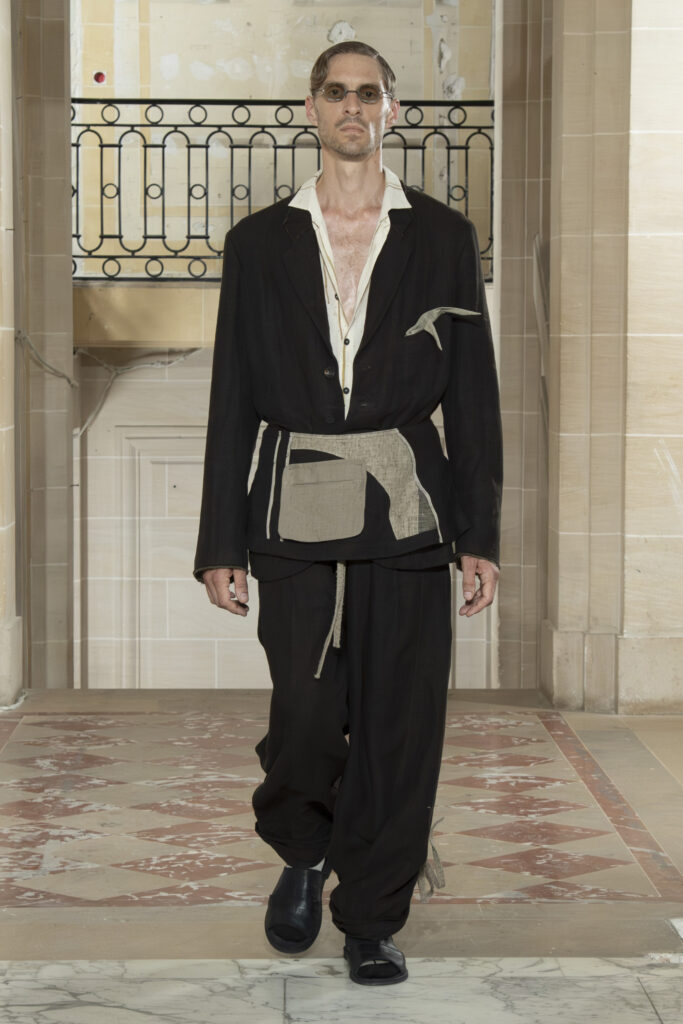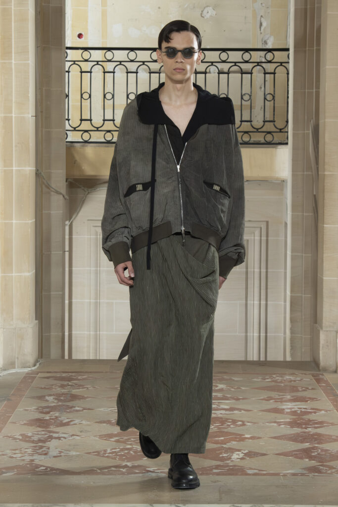 Dans l’univers silencieusement radical de Ziggy Chen, chaque saison est un rite. Pour le printemps-été 2026, le créateur basé à Shanghai dévoile PRITRIKE, contraction poétique de « Primal » et « Strike », telle une collision de forces premières et d’élans instinctifs domestiqués par la main humaine. Présentée le 28 juin dernier à Paris dans le cadre de la Fashion Week Homme, la collection résonne comme une offrande méditative à la nature, à la matière et au temps.