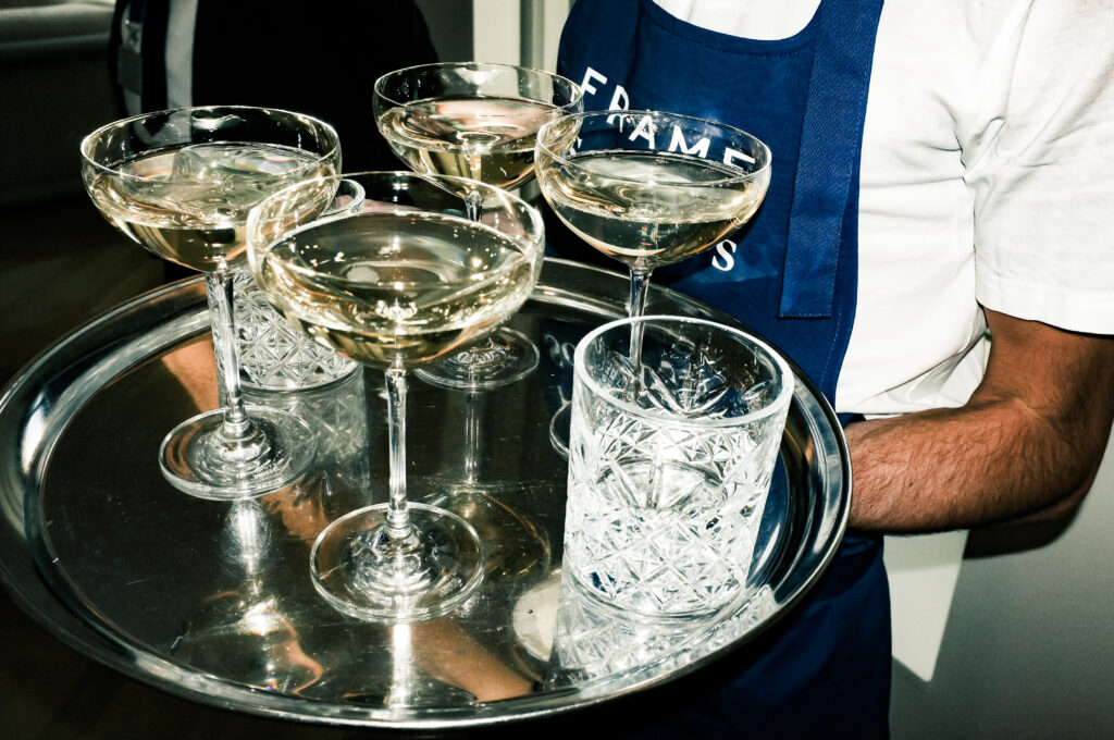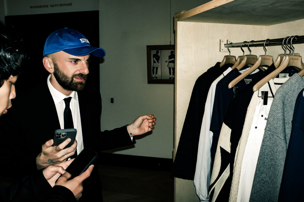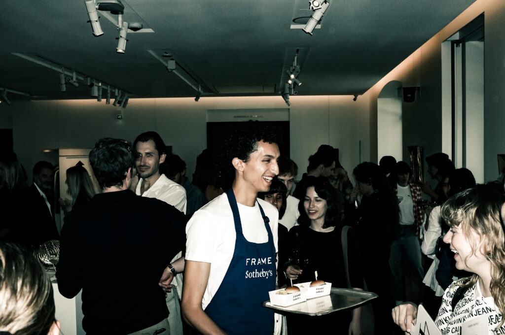 Sous les lustres Directoire du 83, rue du Faubourg Saint-Honoré, les cris d’« Adjugé ! » ont laissé place, mardi 8 juillet, au cliquetis des verres de Bollinger : FRAME et Sotheby’s fêtaient une capsule de 31 pièces qui transpose l’adrénaline des enchères dans l’univers preppy eighties. Entre vestiaires d’étudiants Ivy League et codes chromatiques de la maison de vente, le denim californien s’offre une parenthèse aristocratique.
