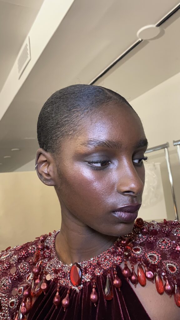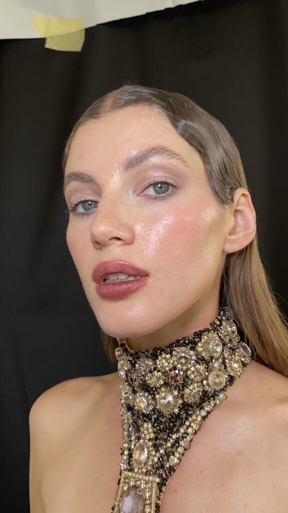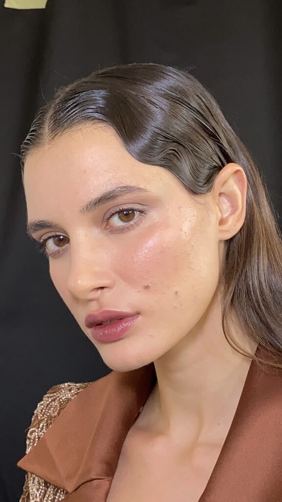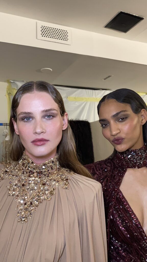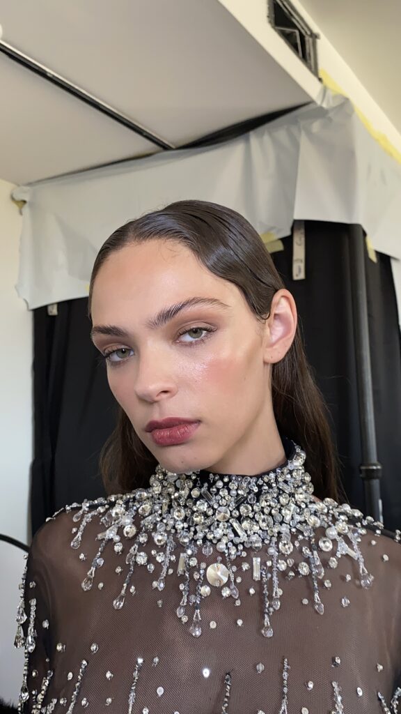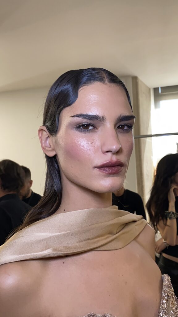 MAC et Zuhair Murad orchestrent ici un rituel beauté d’aujourd’hui : peau vivante, intensité légère, bouche instinctive. Une mise en beauté pensée comme un prolongement du vêtement — précieuse, mais jamais figée.