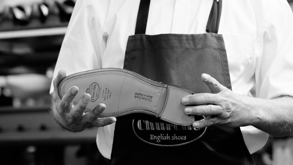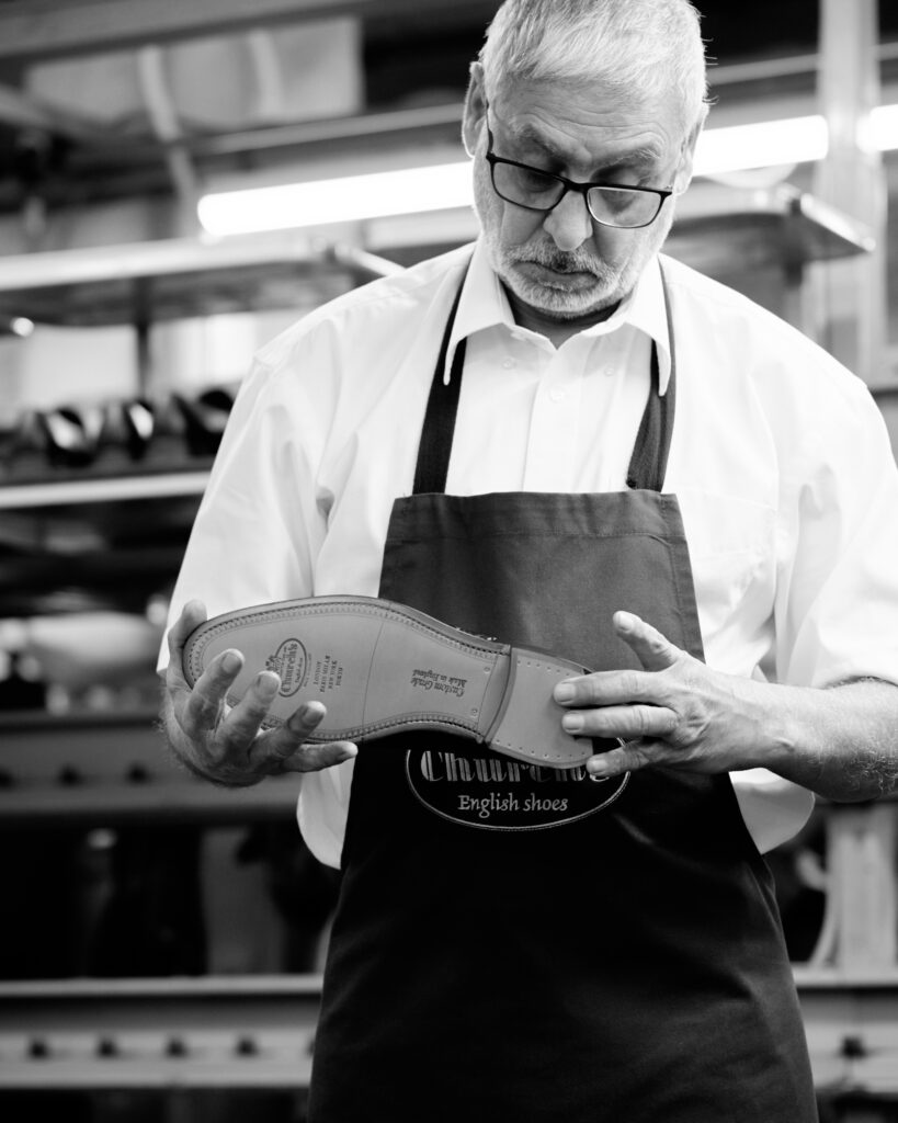 Fabriquée sur la forme 173, fruit d’un long processus d’ajustement entre la forme 73 historique et l’évolution 100 contemporaine, la Chetwynd Contour incarne le juste équilibre entre héritage formel et allure audacieuse. À Northampton, les artisans de Church’s assurent une production selon un rituel méticuleux : 250 étapes manuelles, huit semaines de travail, une maîtrise transmise depuis 1617.