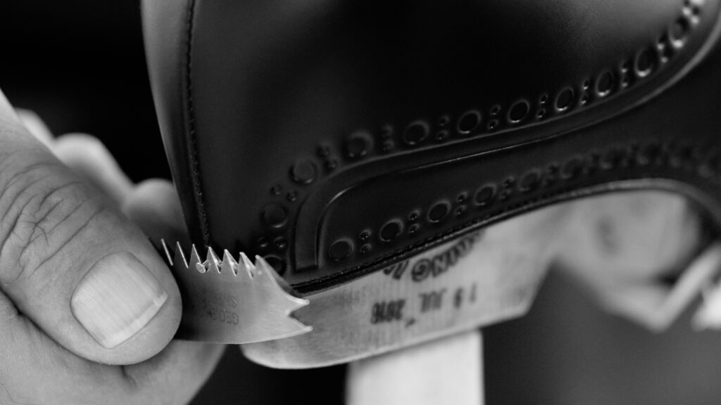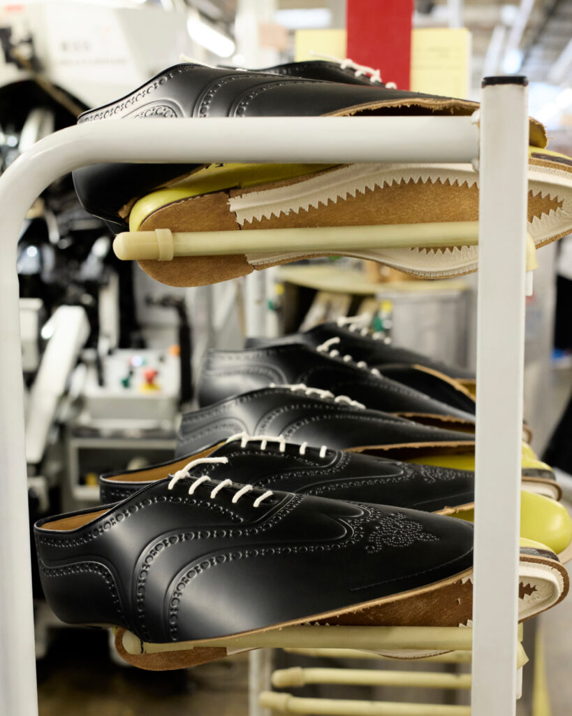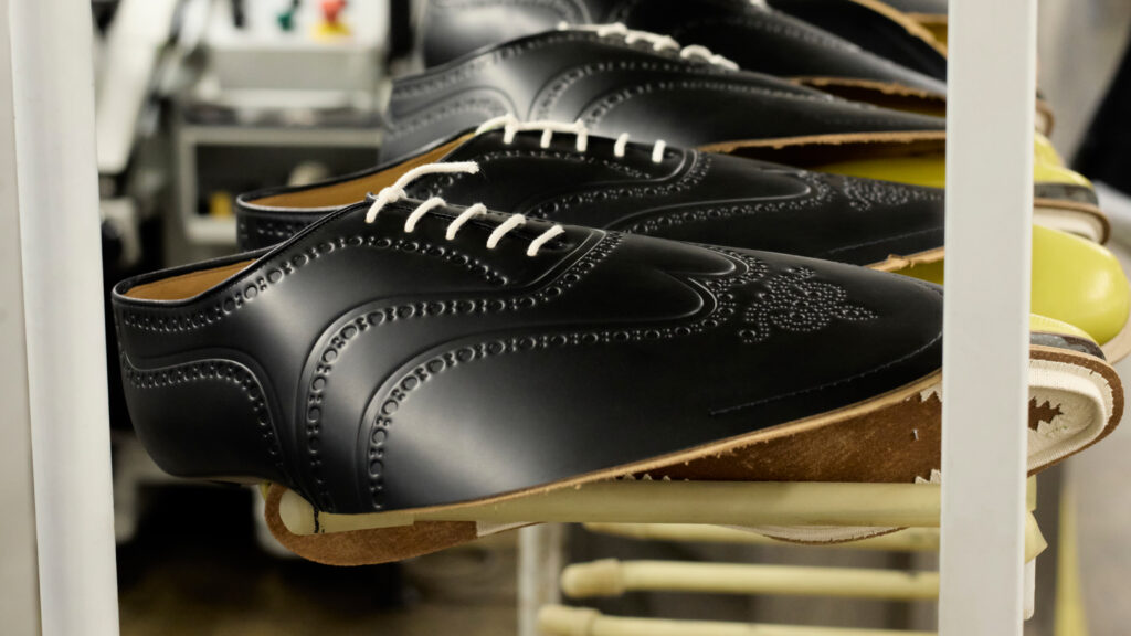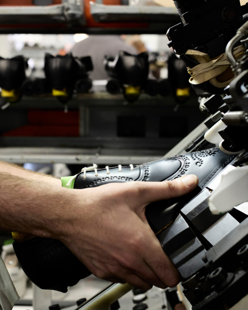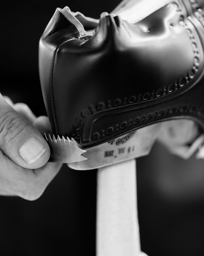 Chaque paire, disponible en cuir brossé noir, bleu marine ou vert bois, rend hommage à la précision anglaise. La gravure numérique, qui redessine le bout fleuri emblématique sans altérer la souplesse du cuir, illustre une volonté claire : honorer le passé tout en embrassant le futur. Ce design innovant sublime la tige sans en compromettre la structure ni les propriétés fonctionnelles.