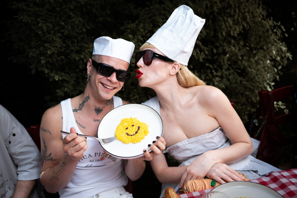Dans le jardin secret d’Aeffe France, sous les guirlandes lumineuses et les cyprès imaginaires, s’est tenue une soirée hybride mêlant tradition culinaire et esprit pop. Aux commandes de cette mise en scène gourmande : le chef Marco Assaggia, qui a réinterprété les classiques de la cuisine italienne comme une extension stylistique de la nouvelle collection eyewear printemps-été 2025, développée en collaboration avec Safilo.